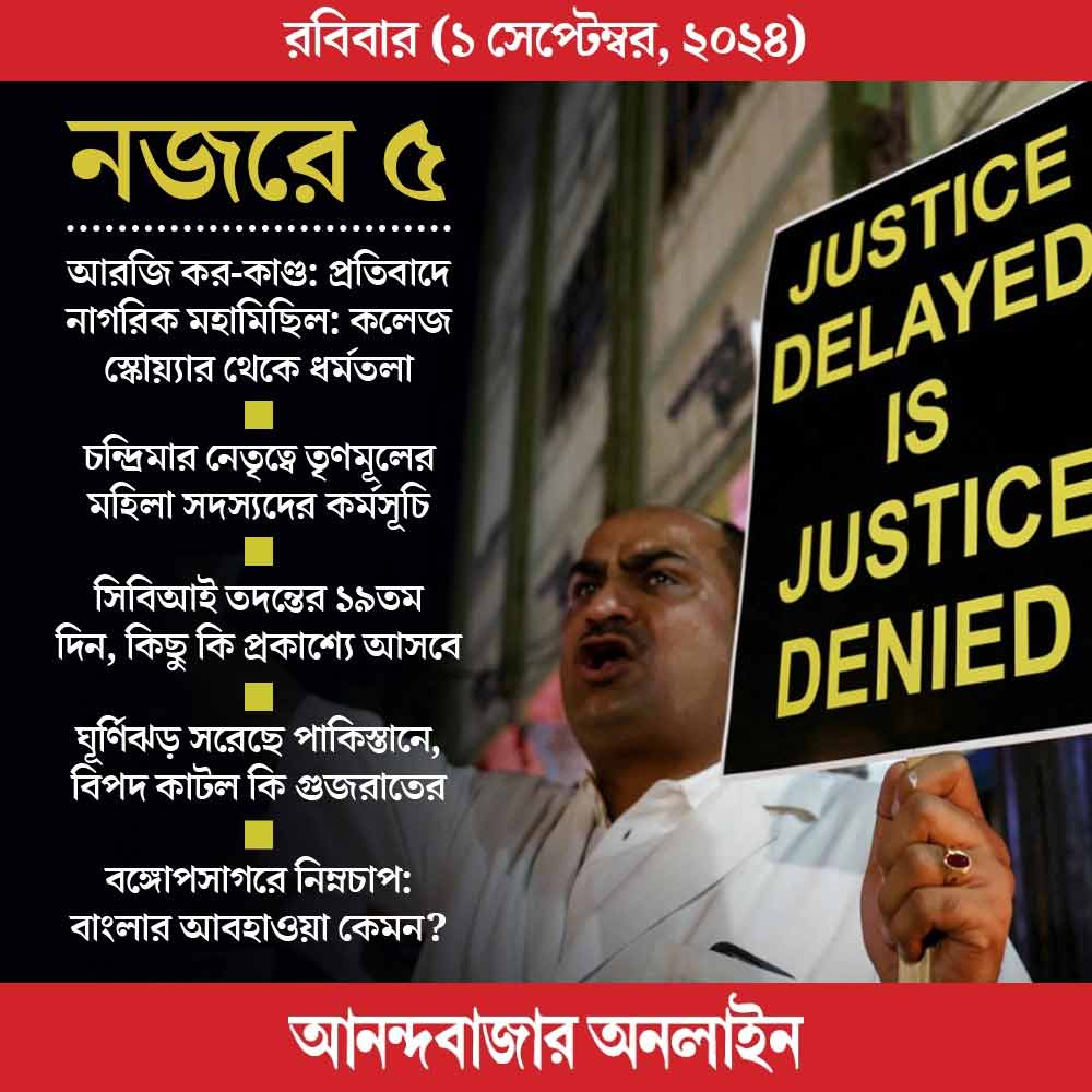 ১৪ অগস্ট মামলার তদন্তভার হাতে পায় সিবিআই। দিল্লি থেকে বিশেষ দল কলকাতায় এসে তদন্ত শুরু করে। তার পর ১৮ দিন কেটে গিয়েছে। আজ ১৯তম দিন। এখনও পর্যন্ত সিবিআইয়ের তরফে প্রকাশ্যে এই মামলার তদন্ত সম্পর্কে কিছু জানানো হয়নি। মামলার সঙ্গে যুক্ত বেশ অনেক জনকেই জিজ্ঞাসাবাদ করেছে তদন্তকারীরা। কিন্তু সিবিআই গত ১৮ দিনে নতুন করে কাউকে গ্রেফতার করেনি। আজ তদন্ত নিয়ে সিবিআই প্রকাশ্যে কিছু বলে কি না সে দিকে নজর থাকবে।