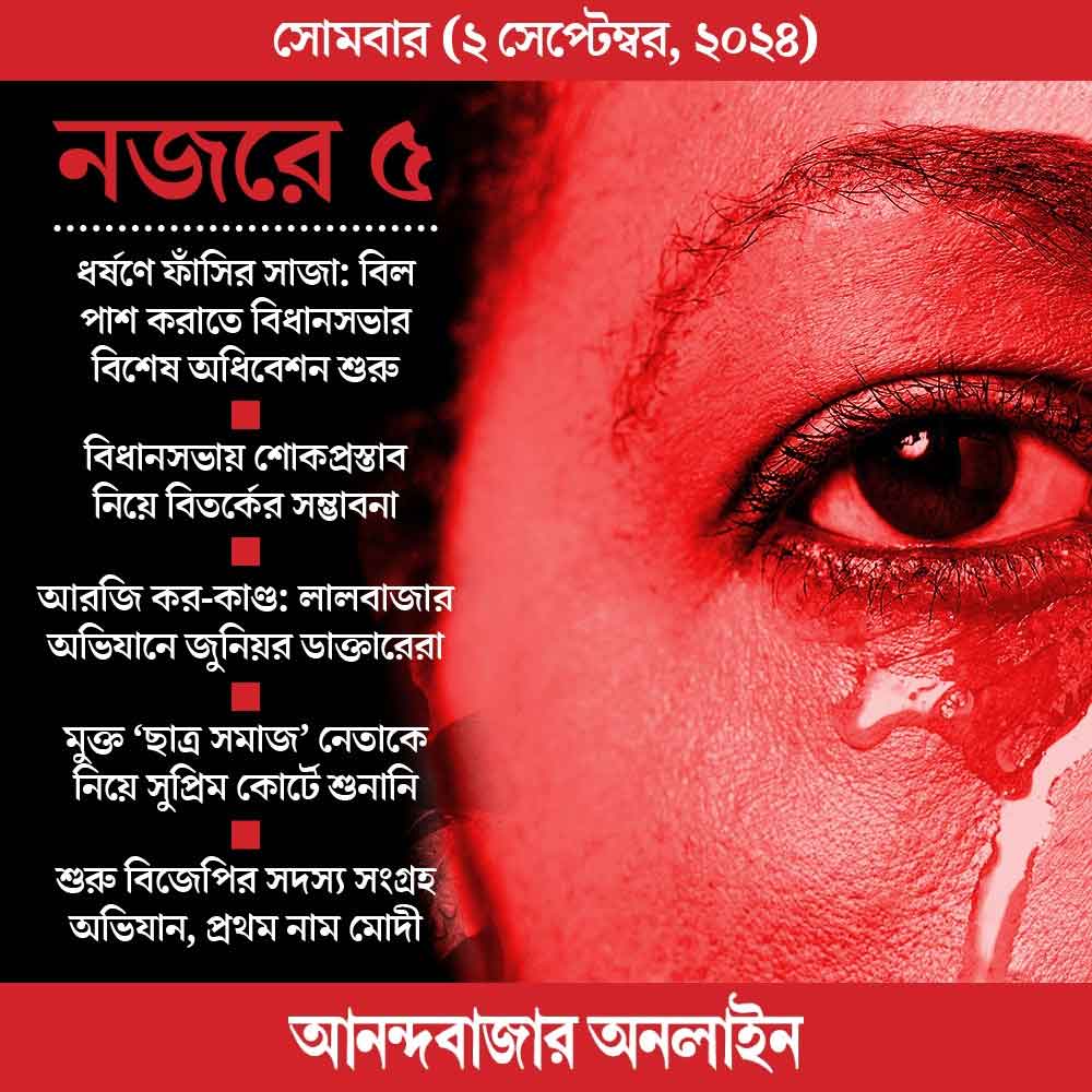 দিল্লির সুপ্রিম কোর্ট থেকে কলকাতার বিধানসভা ভবন, আজ প্রত্যক্ষে বা পরোক্ষে ছাপ থাকবে আরজি কর কাণ্ডেরই। শুরু হচ্ছে বিধানসভার দু’দিনের বিশেষ অধিবেশন। মহিলা চিকিৎসককে ধর্ষণ এবং খুনের ঘটনার অভিঘাতে এ ধরনের অপরাধে কঠোরতম সাজার দাবি উঠেছে সমাজের নানা স্তরে। মুখ্যমন্ত্রী মমতা বন্দ্যোপাধ্যায়ও ফাঁসির শাস্তি চেয়ে আইনের পক্ষে। কেন্দ্রের কাছে দাবি তুলে ধরার পাশাপাশি, রাজ্যও নতুন আইন আনতে চায়। সেই লক্ষ্যেই বিশেষ অধিবেশন বিধানসভার।