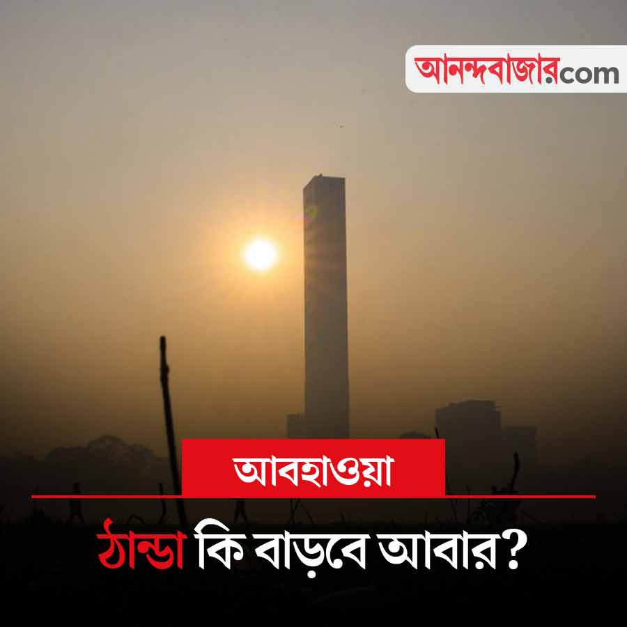 কলকাতা ও পার্শ্ববর্তী এলাকায় এক ধাক্কায় স্বাভাবিকের নীচে নেমে গিয়েছে পারদ। তবে কি ফের ঠান্ডা বাড়তে পারে? তেমন কোনও সম্ভাবনা অবশ্য এখনই দেখতে পাচ্ছেন না আবহবিদেরা। তাপমাত্রা খানিকটা কমলেও কনকনে ঠান্ডা পড়ার সম্ভাবনা আপাতত আর নেই। উত্তর বা দক্ষিণবঙ্গের কোথাও আপাতত তাপমাত্রার খুব বড় কোনও পরিবর্তনের সম্ভাবনা নেই। আগামী অন্তত সাত দিন রাতের তাপমাত্রা একই রকম থাকবে।