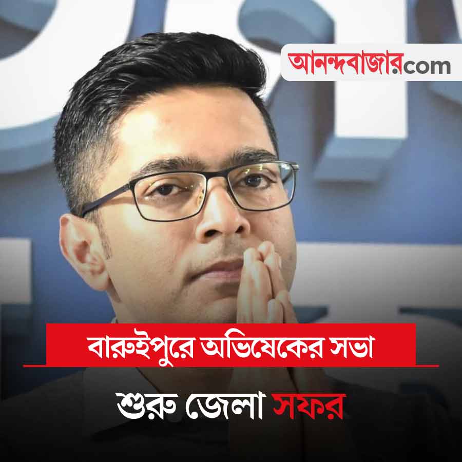 আজ থেকে শুরু হচ্ছে তৃণমূলের সাধারণ সম্পাদক অভিষেক বন্দ্যোপাধ্যায়ের জেলা সফর। প্রথম দিনে তাঁর কর্মসূচি রয়েছে দক্ষিণ ২৪ পরগনার বারুইপুরে। সেখানে ফুলতলা সাগরসঙ্ঘের মাঠে দুপুরে জনসভা করবেন তিনি। গোটা জানুয়ারি মাস ধরে রাজ্যের বিভিন্ন জেলায় কর্মসূচি রয়েছে অভিষেকের। তা শুরু হচ্ছে আজ বারুইপুরের সভা দিয়েই। এই সভায় অভিষেক কী বার্তা দেন, সে দিকে নজর থাকবে।