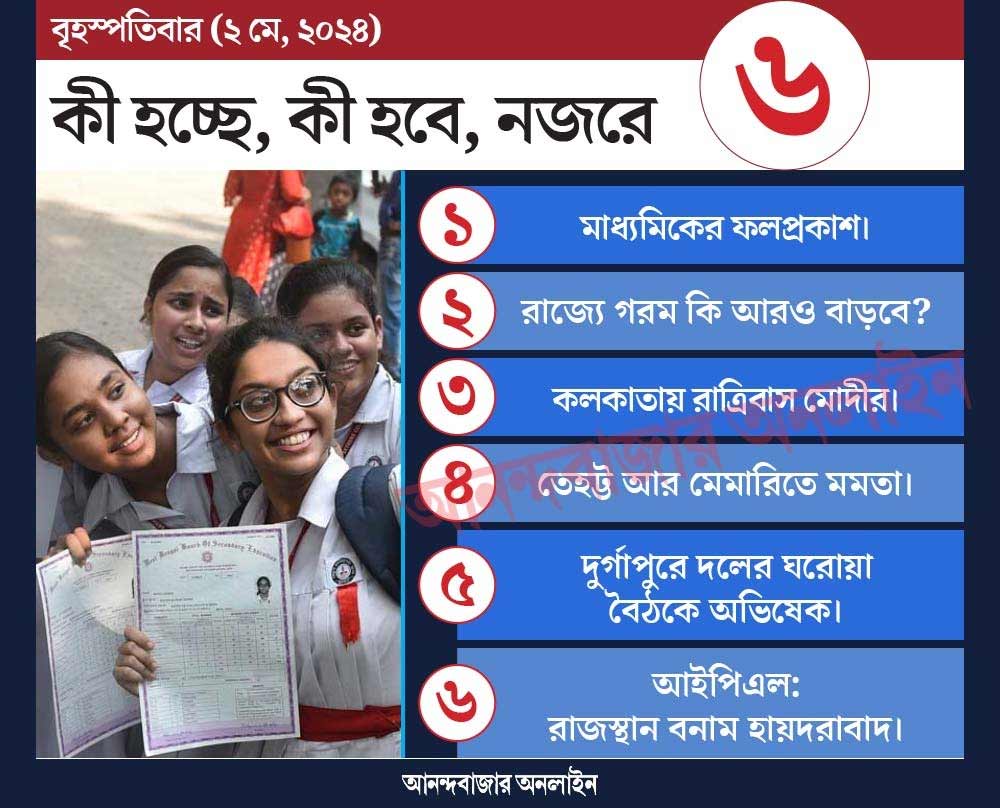 পর্ষদের তরফে বিজ্ঞপ্তি জারি করে জানানো হয়েছে, আজ সকাল ৯টায় সাংবাদিক বৈঠকের মাধ্যমে মাধ্যমিকের ফল ঘোষণা করা হবে। সকাল ৯টা ৪৫ মিনিট থেকে নির্দিষ্ট ওয়েবসাইটে ফল দেখতে পাবে পরীক্ষার্থীরা। সকাল ১০টা থেকে মার্কশিট এবং শংসাপত্রগুলি সংশ্লিষ্ট ক্যাম্প অফিস থেকে সংগ্রহ করতে পারবেন বিভিন্ন স্কুলের প্রতিনিধিরা।