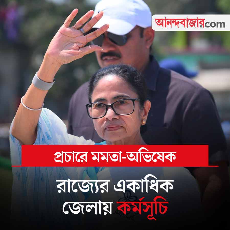 আজ নির্বাচনী প্রচারে ব্যস্ত থাকবেন মমতা বন্দ্যোপাধ্যায় এবং অভিষেক বন্দ্যোপাধ্যায়। তৃণমূলের সর্বভারতীয় সাধারণ সম্পাদক অভিষেক বন্দ্যোপাধ্যায় তাঁর কর্মসূচি শুরু করবেন আসানসোলের বারাবনী থেকে, যেখানে প্রথম জনসভা হবে। এর পর তিনি বীরভূমে গিয়ে তারাপীঠ মন্দিরে পুজো দেবেন। পরে হাসন কেন্দ্রেও প্রচার সভা করবেন অভিষেক। অন্য দিকে, মুখ্যমন্ত্রী মমতা বন্দ্যোপাধ্যায় মালদহের গাজোলে একটি জনসভা দিয়ে দিনের কর্মসূচি শুরু করবেন। এর পর মালদহ শহরে একটি মিছিলেও অংশ নেবেন তিনি।