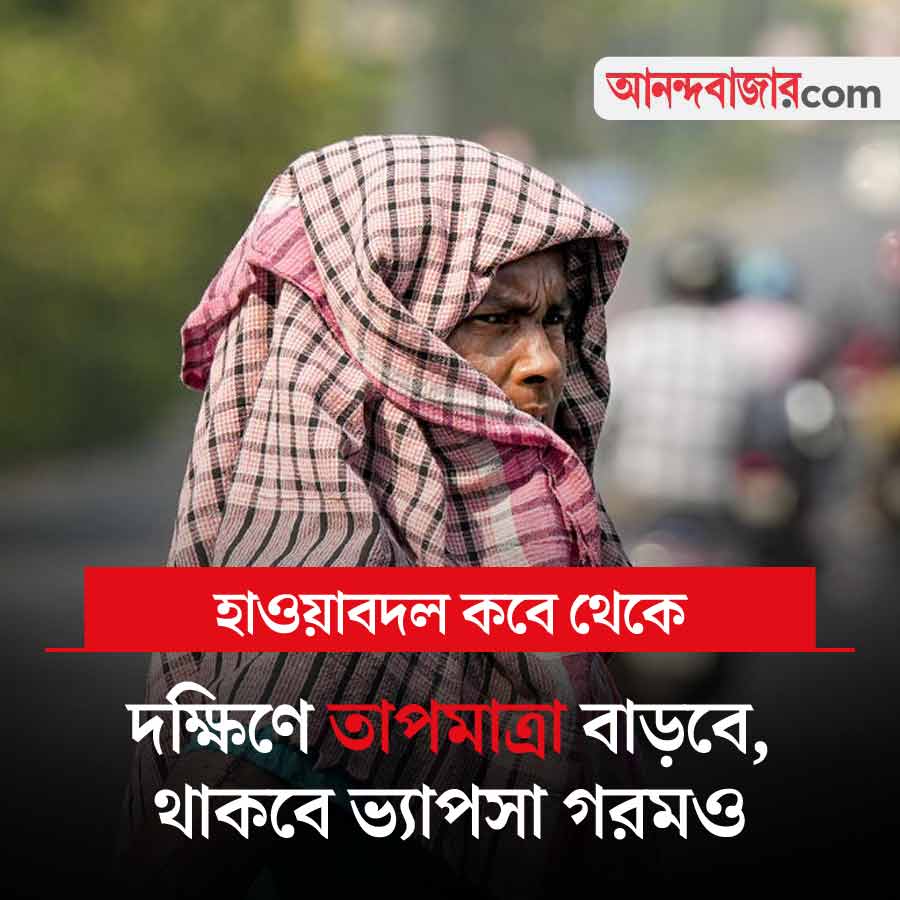 আজ ভ্যাপসা গরম থাকবে থাকবে হাওড়া, কলকাতা, পুরুলিয়া, বাঁকুড়া, পশ্চিম বর্ধমান, পশ্চিম মেদিনীপুর, বীরভূম, উত্তর ২৪ পরগনা এবং হুগলিতে। তবে রবিবার থেকে পরিস্থিতি কিছুটা বদলাবে। কয়েক দিন ঝড়বৃষ্টি হবে দক্ষিণবঙ্গের জেলাগুলিতে। উত্তরবঙ্গের জেলাগুলিতে বজ্রবিদ্যুৎ-সহ ঝড়বৃষ্টি চলবে আগামী ৯ এপ্রিল পর্যন্ত।