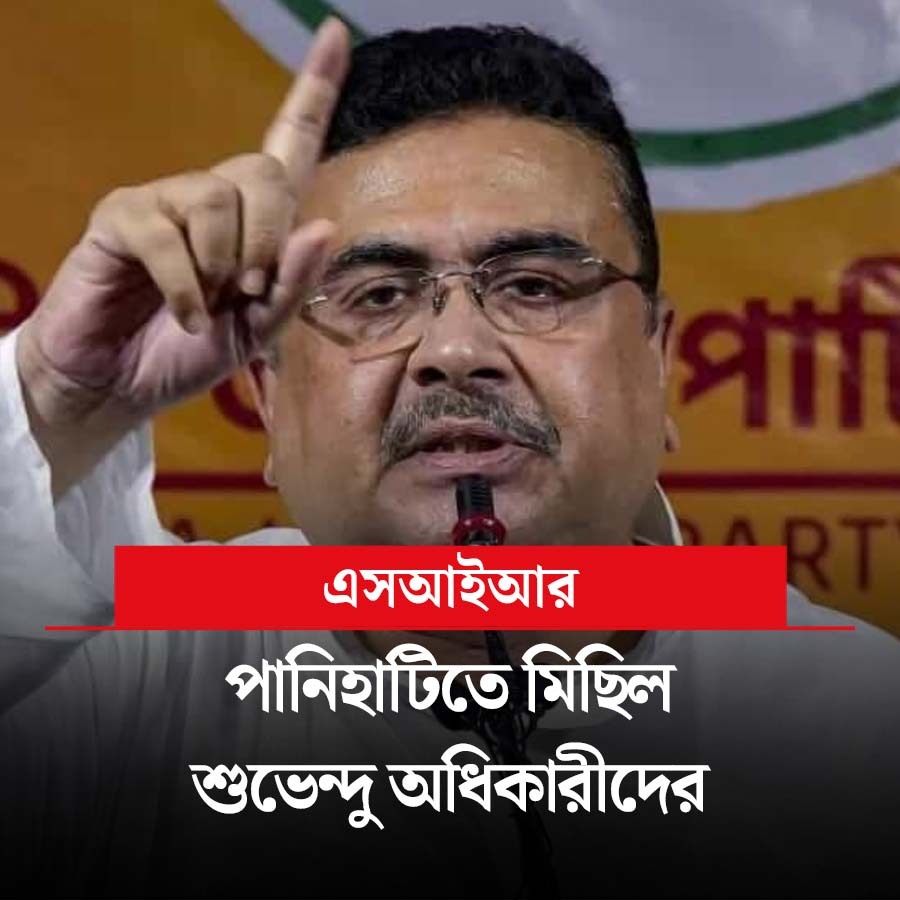 আজ কলকাতায় মিছিল করবেন মমতা-অভিষেক। একই দিনে উত্তর ২৪ পরগনার পানিহাটিতে এসআইআর নিয়ে তৃণমূলের অপপ্রচারের প্রতিবাদে মিছিল করবেন বিরোধী দলনেতা শুভেন্দু অধিকারী। রাজ্য পুলিশ তাঁকে মিছিলের অনুমতি না দেওয়ায় আদালতের দ্বারস্থ হয়েছিলেন তিনি। বিকেলে ৩ থেকে ৫টার মধ্যে শুভেন্দুকে মিছিল করার অনুমতি দিয়েছে হাই কোর্ট। তাই ওই সময় মিছিল করার প্রস্তুতি নিয়েছেন শুভেন্দু।