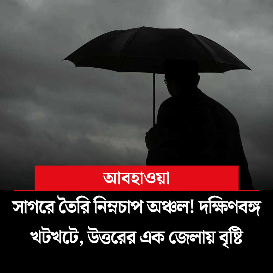 ঘূর্ণিঝড় মোন্থার প্রভাব কাটতে না-কাটতে নতুন করে একটি নিম্নচাপ অঞ্চল তৈরি হয়ে গিয়েছে বঙ্গোপসাগরের উপর। এই নিম্নচাপ অঞ্চলের সরাসরি কোনও প্রভাব পড়বে না পশ্চিমবঙ্গের উপর। উত্তর ও দক্ষিণে মোটের উপর এখন আবহাওয়া থাকবে শুকনো। তবে বুধবার এবং বৃহস্পতিবার উত্তর ২৪ পরগনা, দক্ষিণ ২৪ পরগনায় বিক্ষিপ্ত ভাবে সামান্য বৃষ্টি হতে পারে। উত্তরবঙ্গের ক্ষেত্রে সোমবার সামান্য ভিজতে পারে দার্জিলিং এবং কালিম্পঙের দু’একটি এলাকা। আর কোথাও বৃষ্টির সম্ভাবনা নেই।