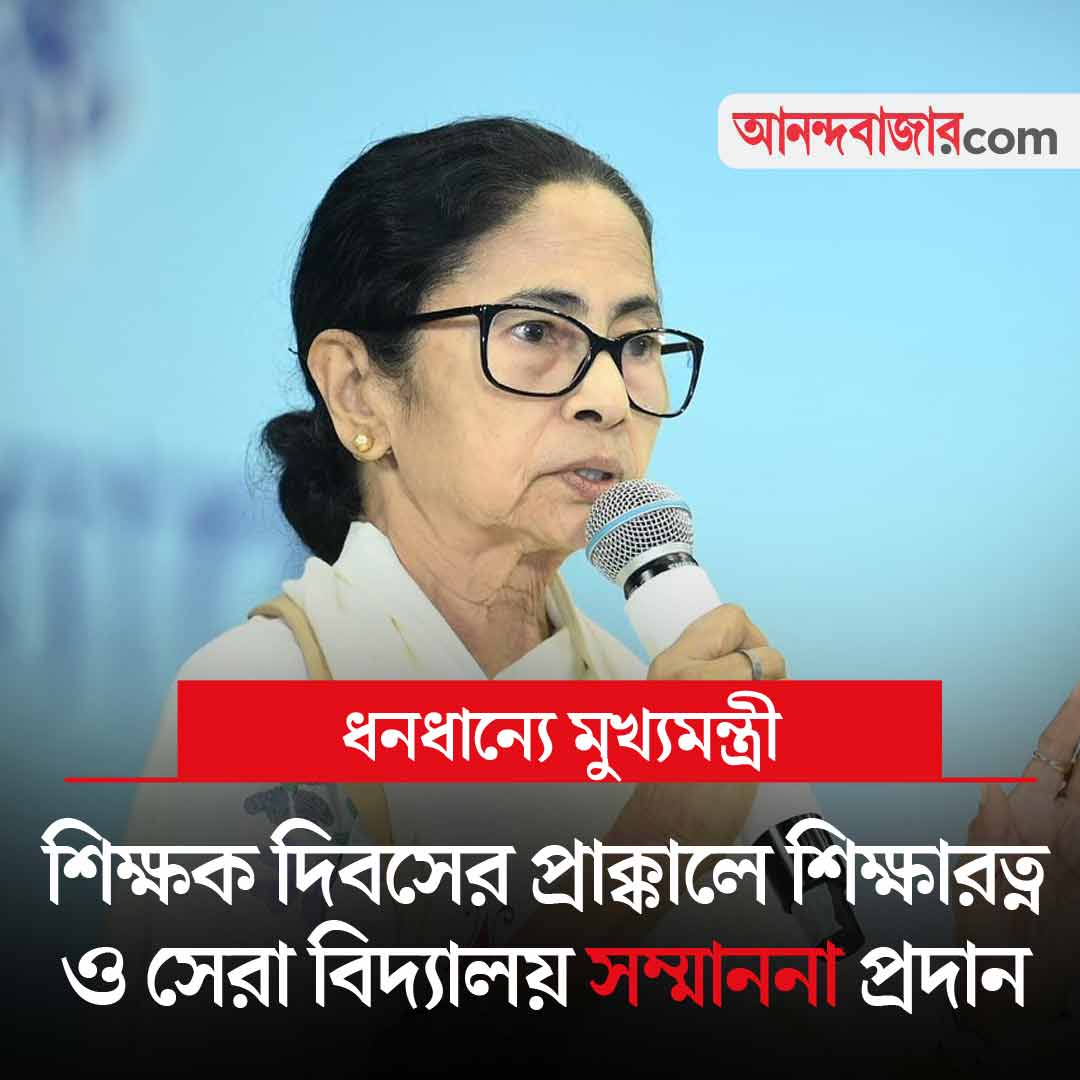 শিক্ষক দিবসের প্রাক্কালে আজ সকালে কলকাতার ধনধান্য প্রেক্ষাগৃহে শিক্ষাক্ষেত্রে বিশেষ অবদানের জন্য শিক্ষারত্ন সম্মান দেওয়া হবে রাজ্য সরকারের তরফে। ওই অনুষ্ঠানে উপস্থিত থাকবেন মুখ্যমন্ত্রী মমতা বন্দ্যোপাধ্যায়। সেরা বিদ্যালয়গুলিকেও সম্মাননা দেওয়া হবে। পাশাপাশি, সংবর্ধনা দেওয়া হবে ২০২৫ সালের কৃতী ছাত্রছাত্রীদেরও।
