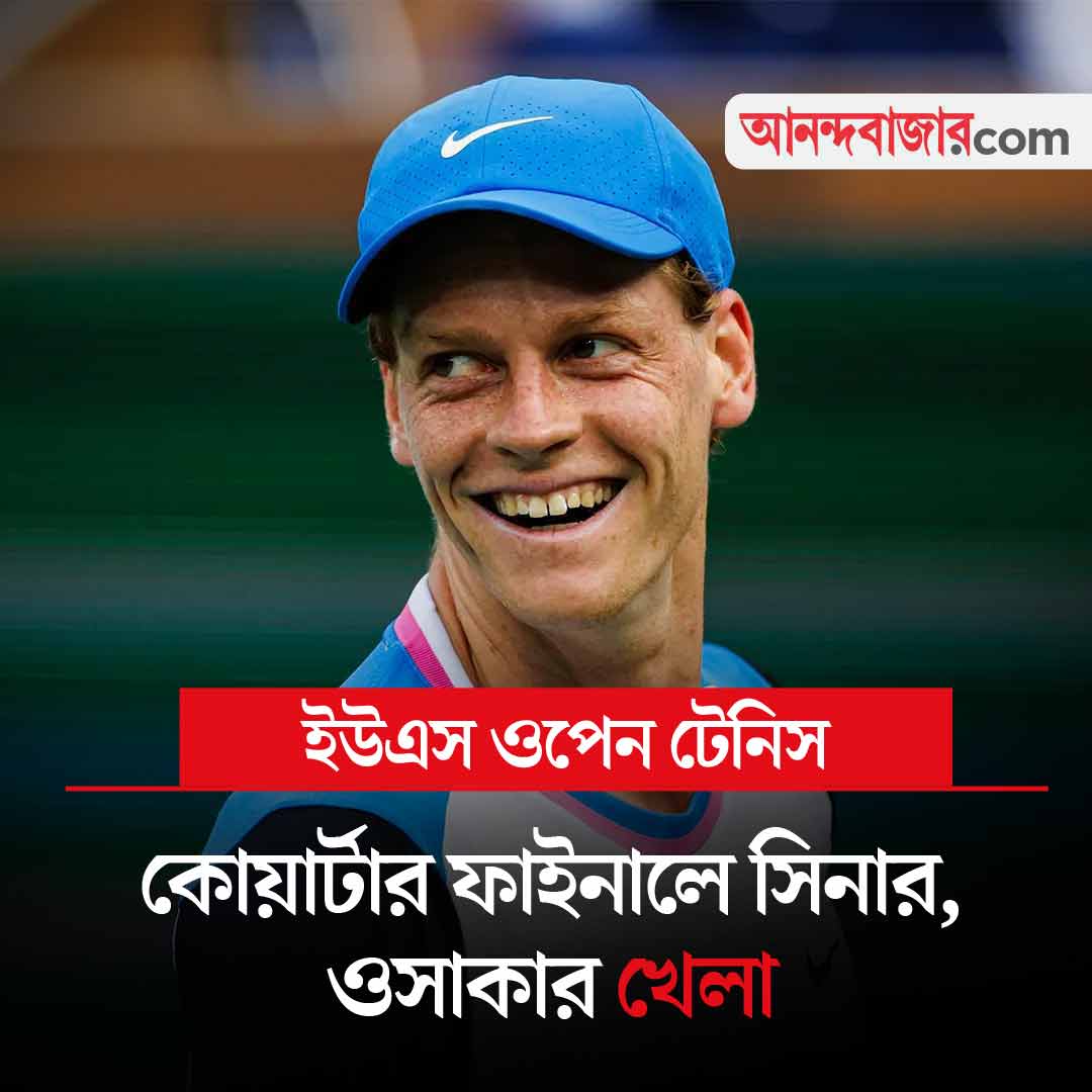 ইউএস ওপেনে আজ পুরুষ ও মহিলাদের একটি করে কোয়ার্টার ফাইনাল। পুরুষদের শীর্ষ বাছাই ইয়ানিক সিনার খেলবেন দশম বাছাই লরেঞ্জো মুসেত্তির সঙ্গে। মহিলাদের ম্যাচে মুখোমুখি ২৩ নম্বর বাছাই নেয়োমি ওসাকা ও ১১ নম্বর বাছাই ক্যারোলিনা মুচোভা। দু’টি ম্যাচই ভারতীয় সময় ভোরে। খেলা দেখা যাবে স্টার স্পোর্টস চ্যানেল ও জিয়োহটস্টার অ্যাপে।