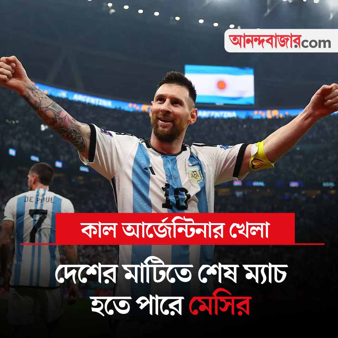 বিশ্বকাপের যোগ্যতা অর্জন পর্বে কাল আর্জেন্টিনার ম্যাচ। লিয়োনেল মেসির দল আগেই ২০২৬ সালের বিশ্বকাপের টিকিট পেয়ে গিয়েছে। তাদের কাছে ভেনেজুয়েলার বিরুদ্ধে এই ম্যাচ নিয়মরক্ষার। তবু এই ম্যাচের তাৎপর্য অন্য জায়গায়। দেশের মাটিতে আর্জেন্টিনার জার্সি গায়ে মেসির হয়তো শেষ ম্যাচ এটি। কারণ, বিশ্বকাপের যোগ্যতা অর্জন পর্বে আর্জেন্টিনার ঘরের মাঠে আর ম্যাচ নেই। বিশ্বকাপের আগে কোনও প্রীতি ম্যাচ আর্জেন্টিনায় হবে কি না, তার কোনও নিশ্চয়তা নেই। সেই কারণে এই ম্যাচে মেসির গোটা পরিবার মাঠে থাকবেন। খেলা কাল, শুক্রবার ভোর ৫টা থেকে। কাল রয়েছে ব্রাজিলের খেলাও। তাদের বিপক্ষে চিলে। এই ম্যাচ ভোর ৬টা থেকে।