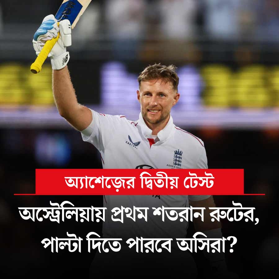 অস্ট্রেলিয়ার মাটিতে প্রথম বার টেস্টে শতরান করেছেন জো রুট। প্রথম ইনিংসে ভাল খেলেছে ইংল্যান্ড। অস্ট্রেলিয়া কি পারবে পাল্টা লড়াই করতে? দ্বিতীয় দিনের খেলা শুরু সকাল ৯:৩০ থেকে। খেলা দেখা যাবে স্টার স্পোর্টস চ্যানেল ও জিয়োহটস্টার অ্যাপে।