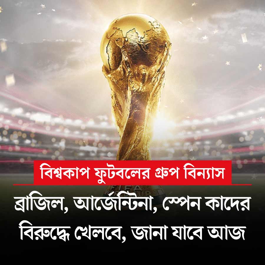 পরের বছর বিশ্বকাপ ফুটবল। তার গ্রুপ বিন্যাস হবে শুক্রবার। গত বারের বিজয়ী আর্জেন্টিনা, ব্রাজিল, স্পেন, জার্মানি, সব বড় দলই গ্রুপ পর্বে নিজেদের প্রতিপক্ষ জানতে পারবে আজ। আমেরিকার কেনেডি সেন্টারে ভারতীয় সময় রাত ১০.৩০ থেকে শুরু ড্র। দেখা যাবে ফিফা প্লাস চ্যানেলে।
