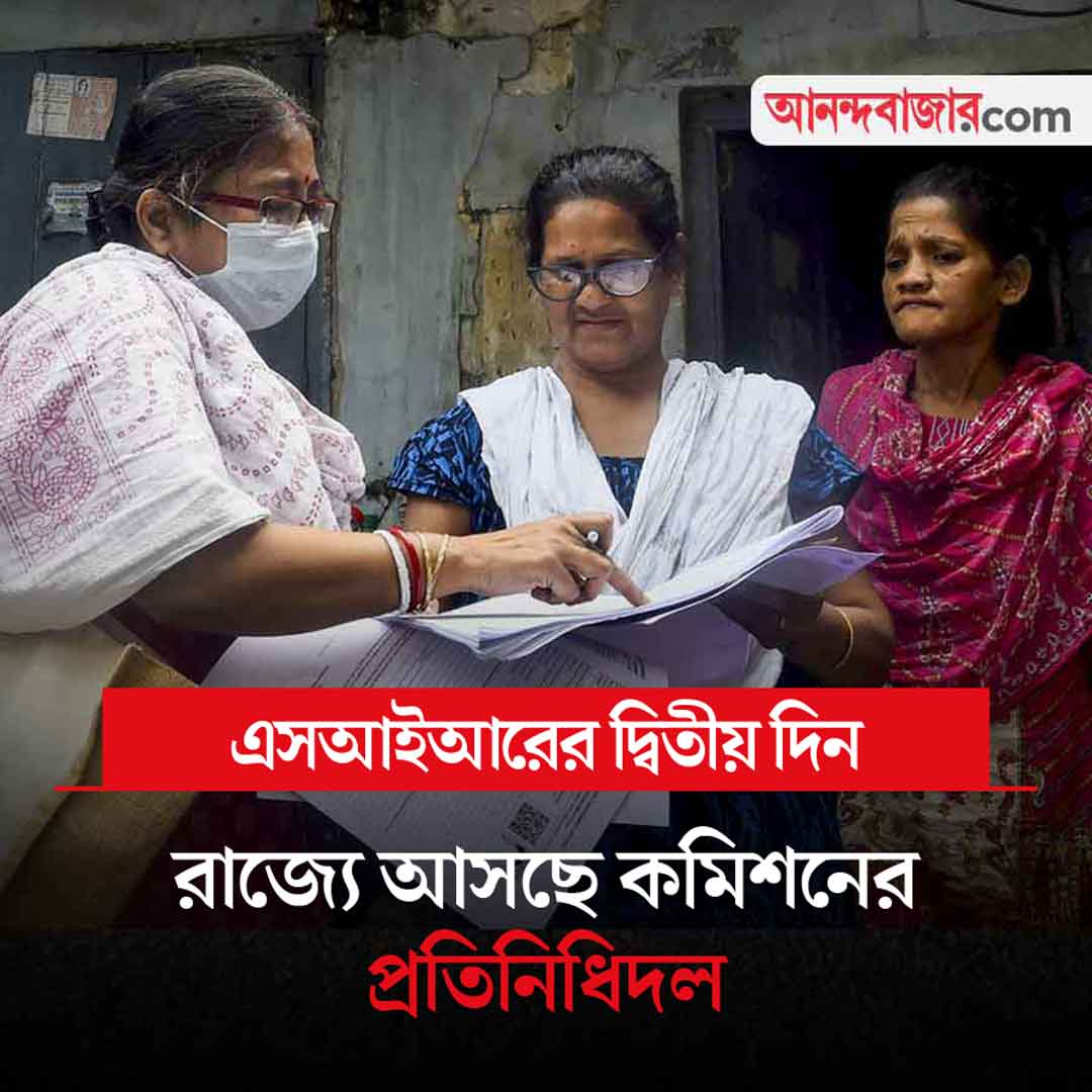 রাজ্যে এসআইআরের আজ দ্বিতীয় দিন। আজ রাজ্যে আসছে নির্বাচন কমিশনের প্রতিনিধিদল। এসআইআর খতিয়ে দেখতে দিল্লি থেকে ওই দল যাবে উত্তরবঙ্গে। প্রতিনিধিদলে থাকবেন ডেপুটি কমিশনার জ্ঞানেশ ভারতী, ডেপুটি সেক্রেটারি অভিনব আগরওয়াল এবং প্রিন্সিপাল সেক্রেটারি এসবি জোশী। শুক্রবার পর্যন্ত তাঁরা রাজ্যে থাকবেন। উত্তরবঙ্গের তিন জেলা কোচবিহার, আলিপুরদুয়ার এবং জলপাইগুড়িতে এসআইআর পর্যালোচনা করবে কমিশনের প্রতিনিধিদল। বুথ লেভেল অফিসারদের কাজ খতিয়ে দেখবে তারা।