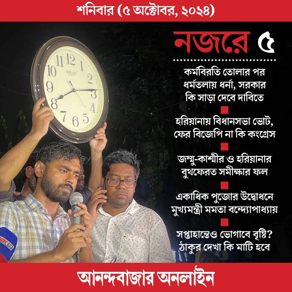 ধর্মতলার ওয়াই চ্যালেনের কাছে অবস্থান চলছে জুনিয়র ডাক্তারদের। তাঁদের দাবিদাওয়া নিয়ে সরকার কী পদক্ষেপ করে আজ সে দিকে নজর থাকবে। যদি সরকারের তরফে কোনও ‘ইতিবাচক পদক্ষেপ’ না করা হয়, তবে জুনিয়র ডাক্তারদের পরবর্তী পদক্ষেপের দিকেও নজর থাকবে আজ।