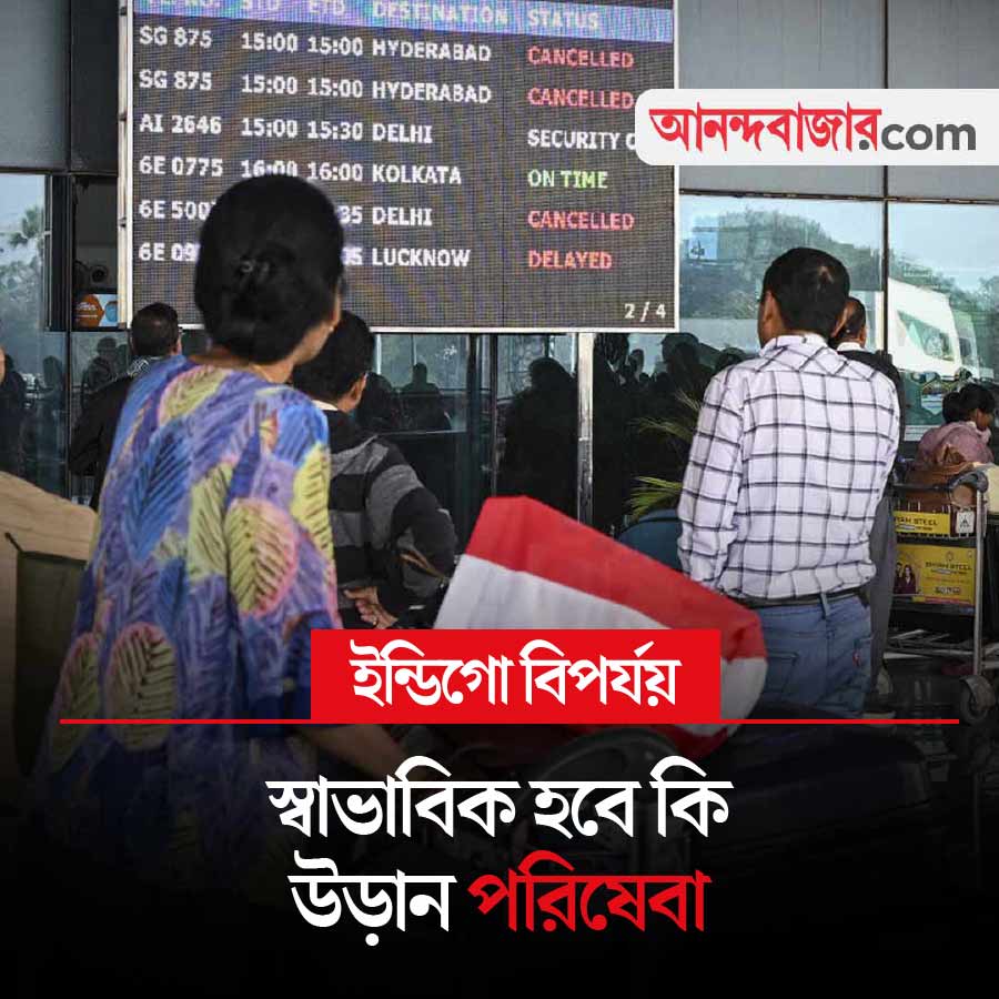 টানা তিন দিন ধরে বিপর্যস্ত ইন্ডিগোর বিমান পরিষেবা। শুক্রবার এই বিমান সংস্থার উড়ান বাতিলের সংখ্যা হাজার ছাড়িয়েছে। দুর্ভোগ এবং পরিষেবায় বিঘ্নের কারণে বার বার যাত্রীদের কাছে ক্ষমাও চেয়েছেন ইন্ডিগো কর্তৃপক্ষ। এই বেসরকারি বিমান সংস্থার সিইও পিটার এলবার্স জানিয়েছেন, গত কয়েক দিনের তুলনায় শুক্রবারই সবচেয়ে বেশি পরিষেবা বিঘ্নিত হয়েছে। অন্যান্য দিন ইন্ডিগোর যত সংখ্যক বিমান চলাচল করে, শুক্রবার তার ‘অর্ধেক’ চলেছে বলে জানান পিটার। তিনি দুঃখপ্রকাশ করে জানিয়েছেন, আজও পরিস্থিতি স্বাভাবিক হওয়ার সম্ভাবনা নেই। তবে তিনি আশা করছেন, শুক্রবারের তুলনায় কম সংখ্যক বিমান বাতিল থাকবে আজ। অর্থাৎ, হাজারের কম বিমান বাতিলের সম্ভাবনা রয়েছে। আজ এই সংক্রান্ত খবরের দিকে নজর থাকবে।