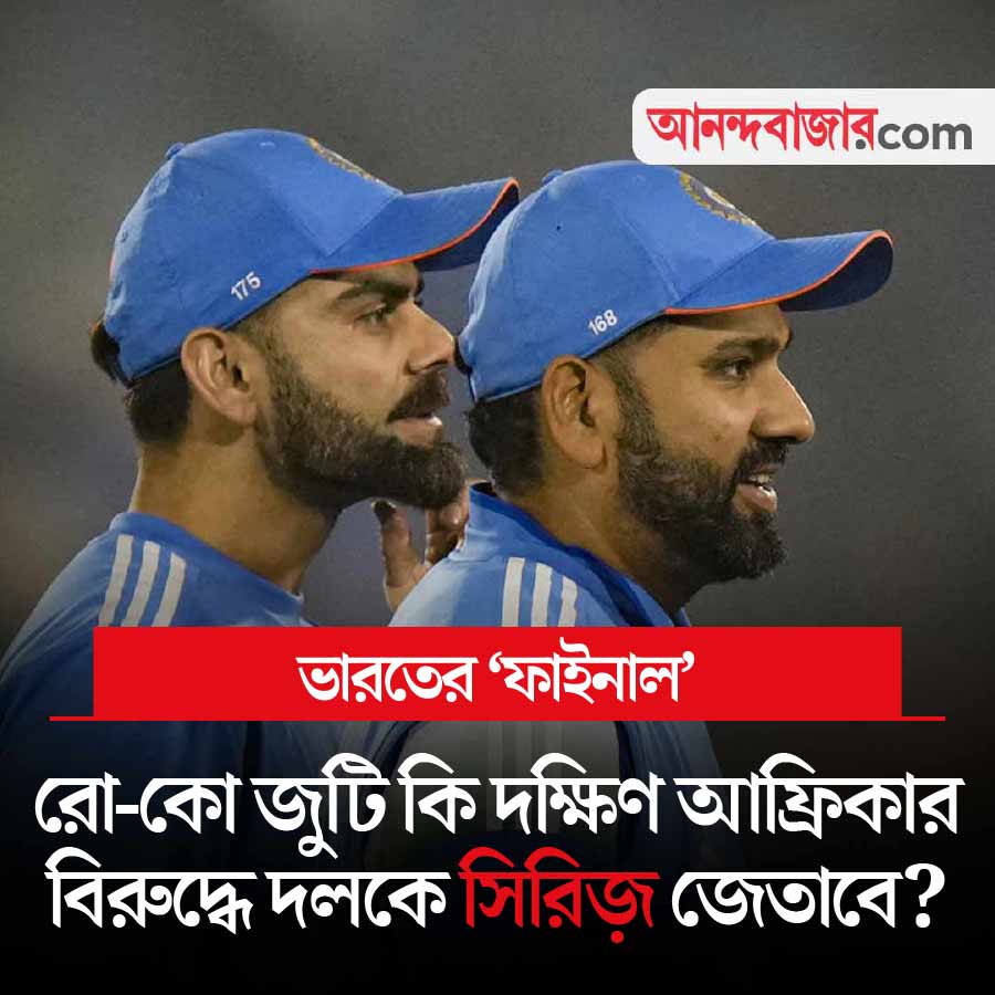 আজ রোহিত শর্মা-বিরাট কোহলিদের ‘ফাইনাল’ ম্যাচ। ভারত বনাম দক্ষিণ আফ্রিকা তৃতীয় এক দিনের ম্যাচ। তিন ম্যাচের সিরিজ়ের ফল এখন ১-১। আজ যারা জিতবে সিরিজ় তাদের। টেস্ট সিরিজ়ে চুনকাম হওয়ার পর ভারত যদি এক দিনের সিরিজ়েও হারে, তা হলে কোচ হিসাবে গৌতম গম্ভীরের ভূমিকা নিয়ে নতুন করে প্রশ্ন উঠবে। ভারতের ভরসা একটিই, ফর্মে রয়েছেন কোহলি। প্রথম দু’টি ম্যাচেই শতরান করেছেন তিনি। আজ কি ভারতকে জেতাতে পারবেন রো-কো? খেলা শুরু দুপুর ১:৩০ থেকে। খেলা দেখা যাবে স্টার স্পোর্টস চ্যানেল ও জিয়োহটস্টার অ্যাপে।