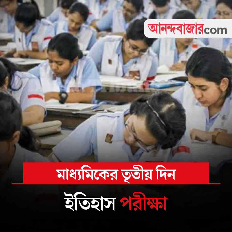 পর পর দু’দিন ছুটির পর আজ মাধ্যমিকের ইতিহাস পরীক্ষা। এর আগে দু’টি পরীক্ষা হয়েছে— বাংলা ও ইংরেজি। পরীক্ষার প্রশ্ন নিয়ে কোনও অভিযোগ না-থাকলেও, প্রথম দু’টি পরীক্ষার সময় মোবাইল নিয়ে ধরা পড়েছে মোট সাত জন। তাদের প্রত্যেকের পরীক্ষা বাতিল করা হয়েছে। অন্য দিকে, পশ্চিম বর্ধমানে প্রধান শিক্ষক-সহ ৮ জন সাসপেন্ড হওয়ার পর আজ পার্শ্ববর্তী স্কুল থেকে ভেনু সুপারভাইজার (প্রধান শিক্ষক) ও ১০ জন নতুন শিক্ষক দিয়ে পরীক্ষা গ্রহণ করাতে চলেছে পর্ষদ।