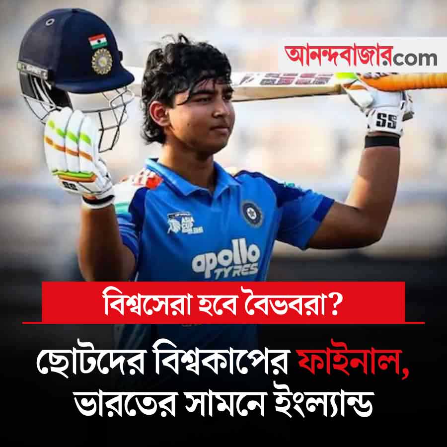 বড়দের টি-টোয়েন্টি বিশ্বকাপ শুরুর এক দিন আগে আজ ঠিক হয়ে যাবে ছোটদের ৫০ ওভারের বিশ্বচ্যাম্পিয়ন কারা। অনূর্ধ্ব১৯ বিশ্বকাপ ক্রিকেটের ফাইনালে লড়াই ভারত এবং ইংল্যান্ডের। এই নিয়ে ১০ বার ছোটদের বিশ্বকাপের ফাইনালে উঠেছে ভারত। তার মধ্যে এই নিয়ে শেষ ছ’বছরে প্রত্যেক বার। মোট পাঁচ বার চ্যাম্পিয়ন হয়েছে ভারত। অন্য দিকে ইংল্যান্ড এই নিয়ে তিন বার ফাইনালে উঠেছে। জিতেছে মাত্র এক বার। সেটিও ২৮ বছর আগে। আজ বৈভব সূর্যবংশী-আয়ুশ মাত্রেরা দেশকে আবার বিশ্বজয়ের স্বাদ এনে দিতে পারবেন? খেলা শুরু দুপুর ১টা থেকে। খেলা দেখা যাবে স্টার স্পোর্টস চ্যানেল ও জিয়োহটস্টার অ্যাপে।