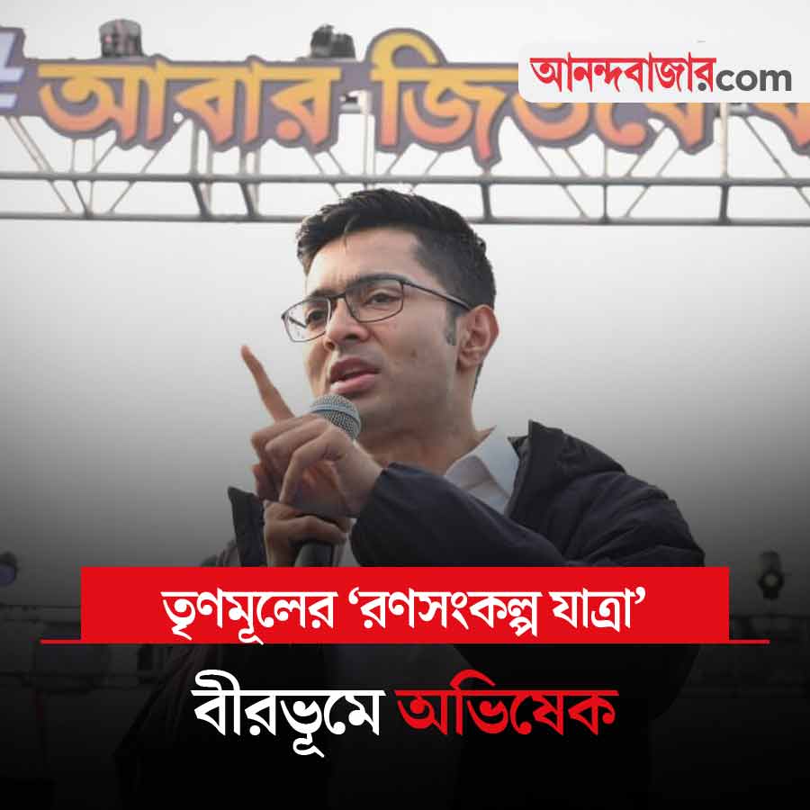 চলতি জেলা সফরে আজ অভিষেকের কর্মসূচি বীরভূমে। বেলা সাড়ে ১২টা নাগাদ তারাপীঠ মন্দিরে যাওয়ার কথা তাঁর। তার পর তিনি যোগ দেবেন দলীয় কর্মসূচিতে। সেই কর্মসূচি শেষ করে অভিষেক যাবেন রামপুরহাট হাসপাতালে। সুনালী বিবির সদ্যোজাত পুত্রসন্তানকে দেখতে। নানা কারণে বীরভূমের রাজনীতি স্পর্শকাতর। দলের মধ্যে অনুব্রত মণ্ডল, কাজল শেখদের বিবাদের বিষয়টিও সর্বজনবিদিত। সেই জেলায় অভিষেক কী বার্তা দেন সেই খবরে আজ নজর থাকবে।