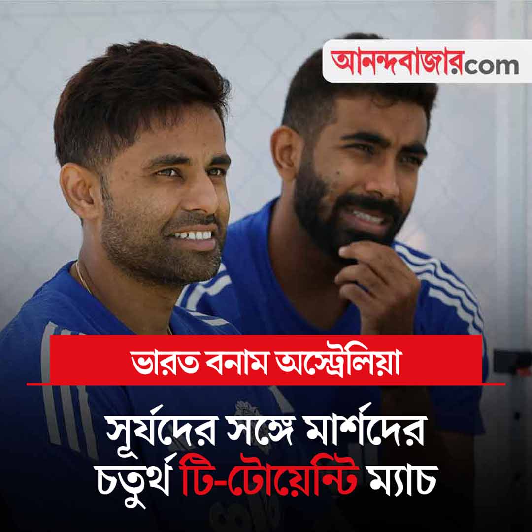 আজ ভারত বনাম অস্ট্রেলিয়া চতুর্থ টি-টোয়েন্টি ম্যাচ। যারাই জিতবে তারা পাঁচ ম্যাচের সিরিজ়ে এগিয়ে যাবে। শুধু তাই নয়, তাদের আর সিরিজ় হারের সম্ভাবনা থাকবে না। আপাতত সিরিজ়ের ফল ১-১। প্রথম ম্যাচ বৃষ্টিতে ভেস্তে যাওয়ার পর দ্বিতীয় ম্যাচে অস্ট্রেলিয়া জিতেছে, তৃতীয় ম্যাচে ভারত জিতেছে। আজ গোল্ড কোস্টে সূর্যকুমার যাদবের ভারতের সঙ্গে মিচেল মার্শের অস্ট্রেলিয়ার খেলা শুরু দুপুর ১:৪৫ থেকে। খেলা দেখা যাবে স্টার স্পোর্টস চ্যানেল ও জিয়োহটস্টার অ্যাপে।