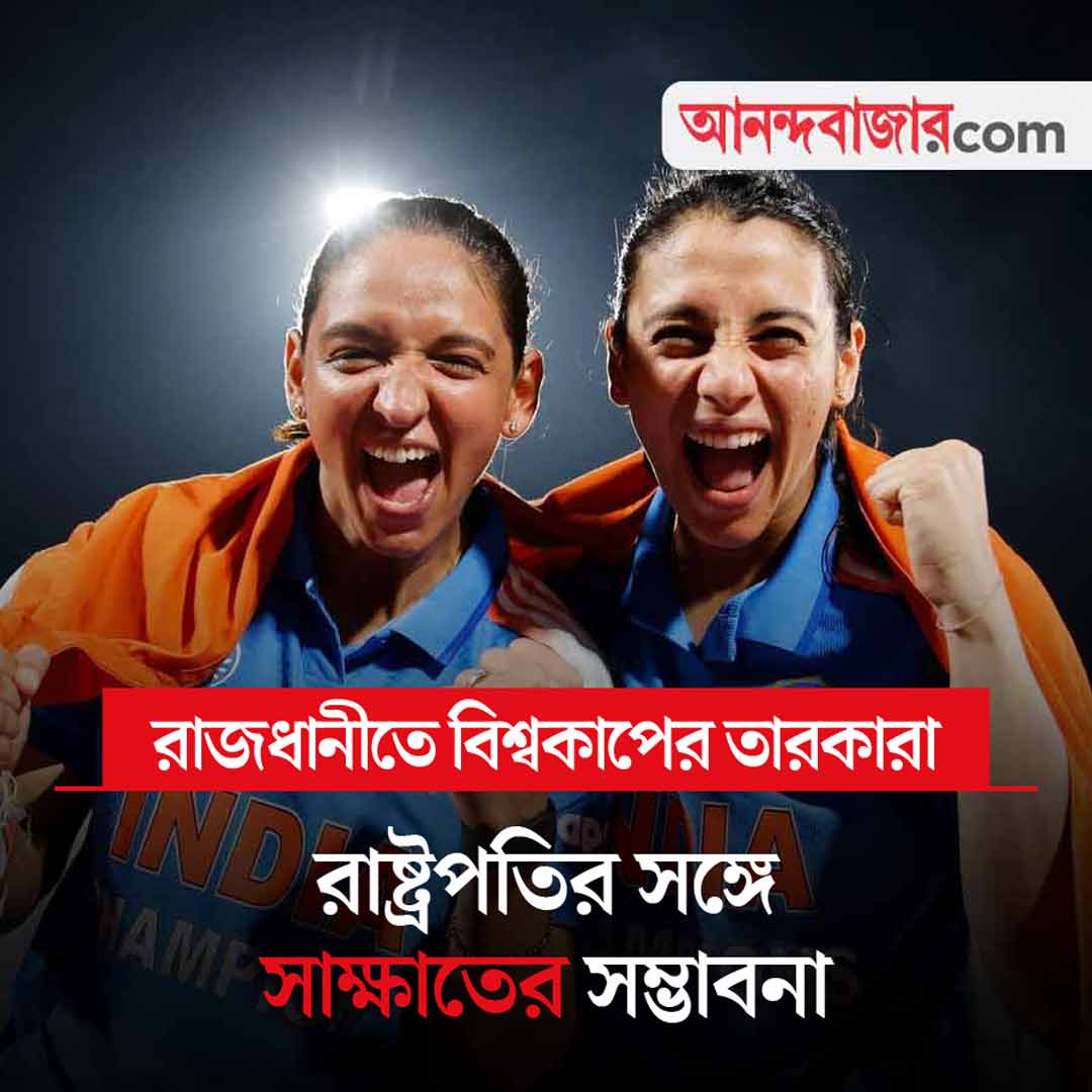 বিশ্বকাপ জেতার পর ভারতের মহিলা ক্রিকেট দল বুধবার দেখা করেছে প্রধানমন্ত্রী নরেন্দ্র মোদীর সঙ্গে। আজ হরমনপ্রীত কৌর, স্মৃতি মন্ধানাদের রাষ্ট্রপতি দ্রৌপদী মুর্মুর সঙ্গে দেখা করার কথা। থাকবেন বাংলার রিচা ঘোষও। ভারতের বিশ্বজয়ী মহিলা ক্রিকেট দলের সব খবর।
