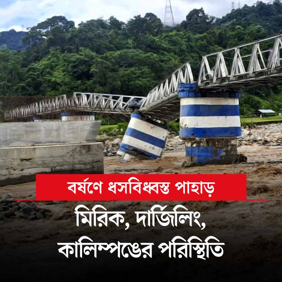 প্রায় ১২ ঘণ্টার টানা বৃষ্টিতে বিপর্যস্ত উত্তরবঙ্গের পাহাড়। কোথাও ধসে ঘরবাড়ি, সেতু ভেঙে পড়েছে। কোথাও ক্ষতিগ্রস্ত রাস্তাঘাট। পুজো মিটতে না-মিটতেই এই বিপর্যয়ে অন্তত ২০ জনের মৃত্যু হয়েছে। সবচেয়ে বেশি ক্ষতিগ্রস্ত মিরিক। ফুঁসছে তিস্তা। ক্ষতিগ্রস্ত কালিম্পংও। পুজোর সময় পাহাড়ে ঘুরতে যাওয়া বহু পর্যটকই সেখানে আটকে পড়েছেন। তাঁদের উদ্ধারের চেষ্টা চালানো হচ্ছে।