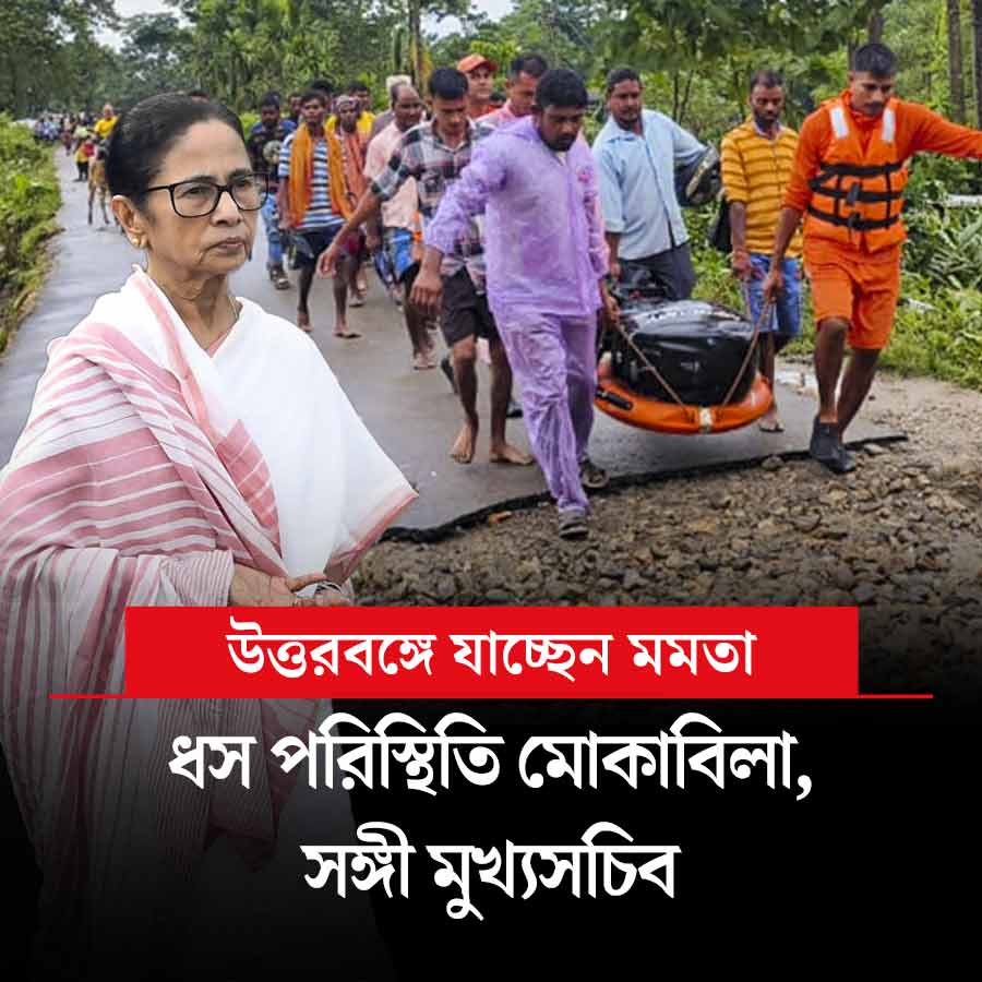 উত্তরবঙ্গের দুর্যোগপূর্ণ পরিস্থিতি খতিয়ে দেখতে আজ সেখানে যাচ্ছেন মুখ্যমন্ত্রী মমতা বন্দ্যোপাধ্যায় । গতকাল কার্নিভালে যোগদানের আগে নবান্ন থেকে এ কথা জানানো হয়েছে। দুপুরের মধ্যেই তিনি শিলিগুড়ি পৌঁছে যাবেন । সেখান থেকেই দুর্গত এলাকায় পৌঁছোবেন মুখ্যমন্ত্রী । তার সঙ্গে যাচ্ছেন মুখ্যসচিব মনোজ পন্থ । তবে মুখ্যমন্ত্রী সেখানে কতদিন থাকবেন তা জানানো হয়নি ।