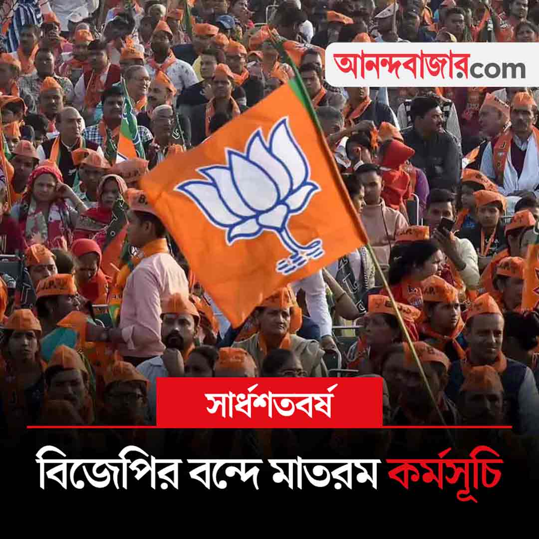 আজ গোটা দেশে বিজেপি পালন করবে ‘বন্দে মাতরম’ রচনার সার্ধশতবর্ষ। ১৮৭৫ সালকে এই গানের রচনাকাল হিসাবে ধরা হয়। পরে ‘আনন্দমঠ’ উপন্যাসের অংশ হিসাবে গানটি প্রথম প্রকাশিত হয় ১৮৮২ সালে। কিন্তু উপন্যাস বাদে শুধু গানটির রচনাকাল হিসাব করলে এ বছর রচনাটির ১৫০ বছর পূর্তি। তাই আজ থেকে আগামী এক বছর ধরে বিজেপি গোটা দেশেই ‘বন্দে মাতরম’-এর সার্ধশতবর্ষ পালন করবে। পশ্চিমবঙ্গেও বিজেপির প্রথম সারির প্রত্যেক নেতা আজ এই কর্মসূচিতে অংশ নিচ্ছেন। রাজ্য বিজেপির সভাপতি শমীক ভট্টাচার্য হুগলির জোড়াঘাটের বন্দে মাতরম ভবনের কর্মসূচিতে। উত্তর চব্বিশ পরগনার নৈহাটির কাঁঠালপাড়ায় ‘বন্দে মাতরম’ রচয়িতা বঙ্কিমচন্দ্র চট্টোপাধ্যায়ের যে বসতভিটা, সেখানে থাকবেন রাজ্য বিজেপির প্রাক্তন সভাপতি তথা কেন্দ্রীয় প্রতিমন্ত্রী সুকান্ত মজুমদার। রাজ্য বিধানসভার বিরোধী দলনেতা শুভেন্দু অধিকারী কলকাতার কলেজ স্ট্রিটে আয়োজিত কর্মসূচিতে থাকবেন। উত্তর চব্বিশ পরগনার বারাসতে কর্মসূচি পালন করবেন বিজেপির কেন্দ্রীয় নেতা তথা কেন্দ্রীয় মন্ত্রী ভূপেন্দ্র যাদব। রাজ্য বিজেপির প্রাক্তন সভাপতি রাহুল সিংহ থাকবেন মুর্শিদাবাদের লালবাগে।