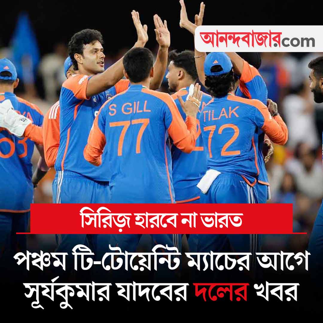 চতুর্থ টি-টোয়েন্টি ম্যাচে জিতে অস্ট্রেলিয়ার বিরুদ্ধে সিরিজ়ে এগিয়ে গেল ভারত। পাঁচ ম্যাচের সিরিজ় আর হারার সম্ভাবনা নেই সূর্যকুমার যাদবের দলের। অস্ট্রেলিয়াকে সিরিজ় বাঁচাতে হলে শেষ ম্যাচে জিততেই হবে। শনিবার পঞ্চম ম্যাচ ব্রিসবেনে। মাঝে আজ এক দিনের বিশ্রাম। দুই দলের খবর।