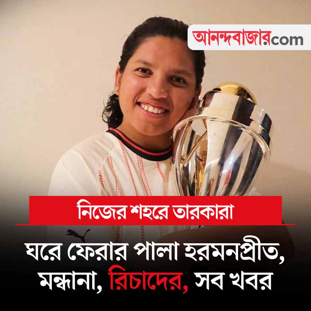 বিশ্বকাপ জেতার পর ভারতের মহিলা ক্রিকেট দল বুধবার দেখা করেছে প্রধানমন্ত্রী নরেন্দ্র মোদীর সঙ্গে। বৃহস্পতিবার তাদের সাক্ষাৎ হয়েছে রাষ্ট্রপতি দ্রৌপদী মুর্মুর সঙ্গে। আজ হরমনপ্রীত কৌর, স্মৃতি মন্ধানাদের নিজের শহরে ফেরার কথা। ফিরবেন বাংলার রিচা ঘোষও। ভারতের বিশ্বজয়ী মহিলা ক্রিকেট দলের সব খবর।