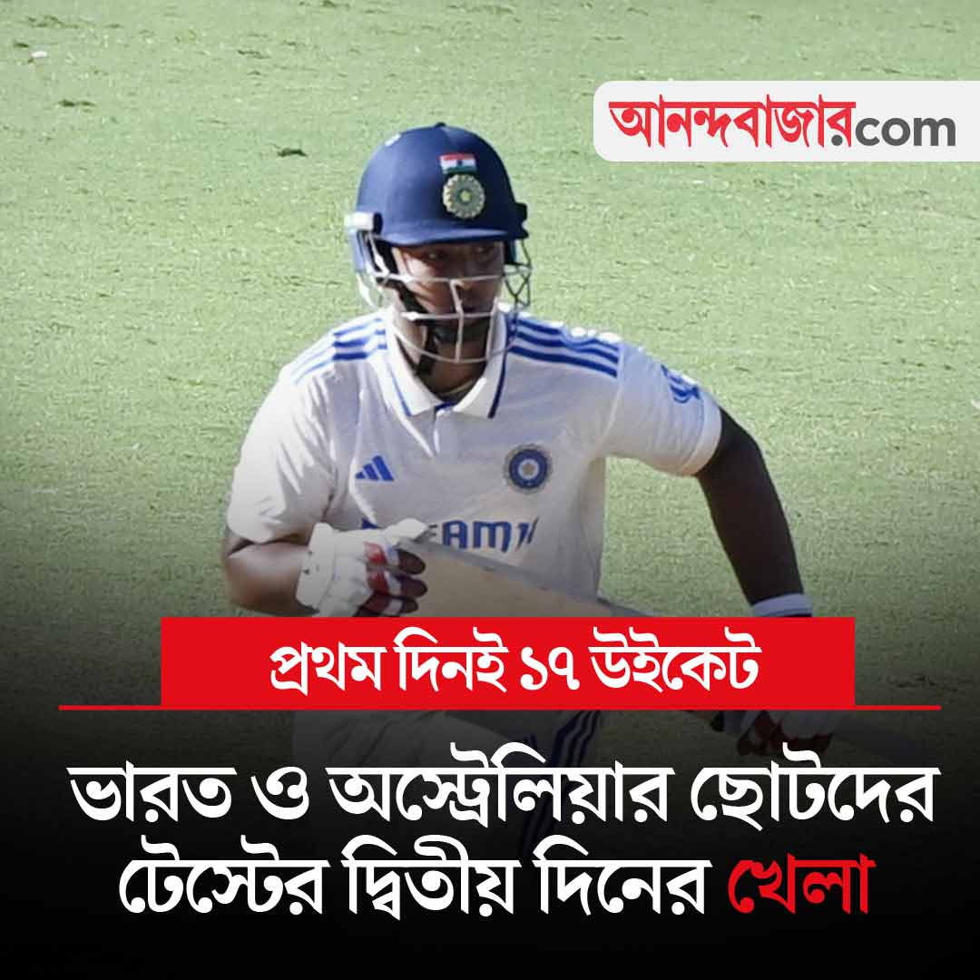 শুরু হয়ে গিয়েছে ভারত এবং অস্ট্রেলিয়ার ছোটদের টেস্ট। দ্বিতীয় টেস্টে প্রথম দিনই পড়েছে ১৭টি উইকেট। অস্ট্রেলিয়ার অনূর্ধ্ব-১৯ দলের প্রথম ইনিংস ১৩৫ রানে শেষ হয়ে যাওয়ার পর ভারত দিনের শেষে ৭ উইকেটে ১৪৪ রান তুলেছে। চার দিনের টেস্টে আজ দ্বিতীয় দিনের খেলা শুরু ভোর ৫:৩০ থেকে। খেলা দেখা যাবে স্টার স্পোর্টস চ্যানেল ও জিয়োহটস্টার অ্যাপে।