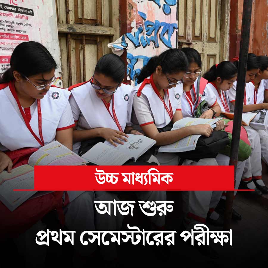 আজ থেকে শুরু হচ্ছে উচ্চ মাধ্যমিকের প্রথম সেমেস্টারের পরীক্ষা। ২২ সেপ্টেম্বর পর্যন্ত চলবে পরীক্ষা। মোট পরীক্ষার্থীর সংখ্যা ৬ লক্ষ ৬০ হাজার। প্রশ্নপত্র নিয়ে কড়া নিরাপত্তার ব্যবস্থা করেছে মধ্যশিক্ষা পর্ষদ। আগেই জানানো হয়েছে, পরীক্ষা হলে কোনও রকম ক্যালকুলেটর ব্যবহার করতে পারবে না পরীক্ষার্থীরা। সকাল ১০টা থেকে ১১ টা ১৫ মিনিট পর্যন্ত চলবে পরীক্ষা। মিউজিক, ভিস্যুয়াল আর্টস এবং বৃত্তিমূলক বিষয়ের ক্ষেত্রে পরীক্ষা হবে সকাল ১০ থেকে ১০ টা ৪৫ মিনিট পর্যন্ত।