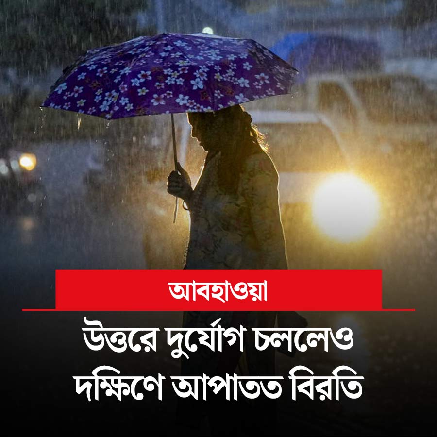 সপ্তাহের মাঝামাঝি সময় থেকে আবার বাড়তে পারে ঝড়বৃষ্টির পরিমাণ। কলকাতা-সহ দক্ষিণের সব জেলাতেই রয়েছে সতর্কতা। উত্তরবঙ্গে দুর্যোগ চলবে সপ্তাহ জুড়েই। আজও কলকাতা-সহ দক্ষিণের সব জেলায় বিক্ষিপ্ত ভাবে হালকা বৃষ্টির সম্ভাবনা রয়েছে। তবে জেলার সব জায়গায় বৃষ্টি হবে না। কোথাও ভারী বৃষ্টির সম্ভাবনাও নেই। সোমবার দার্জিলিং, জলপাইগুড়ি, আলিপুরদুয়ার, কালিম্পং, কোচবিহারে হলুদ সতর্কতা জারি করা হয়েছে। তার মধ্যে জলপাইগুড়ি, আলিপুরদুয়ারে হতে পারে ভারী (৭ থেকে ১১ সেন্টিমিটার) বৃষ্টি।