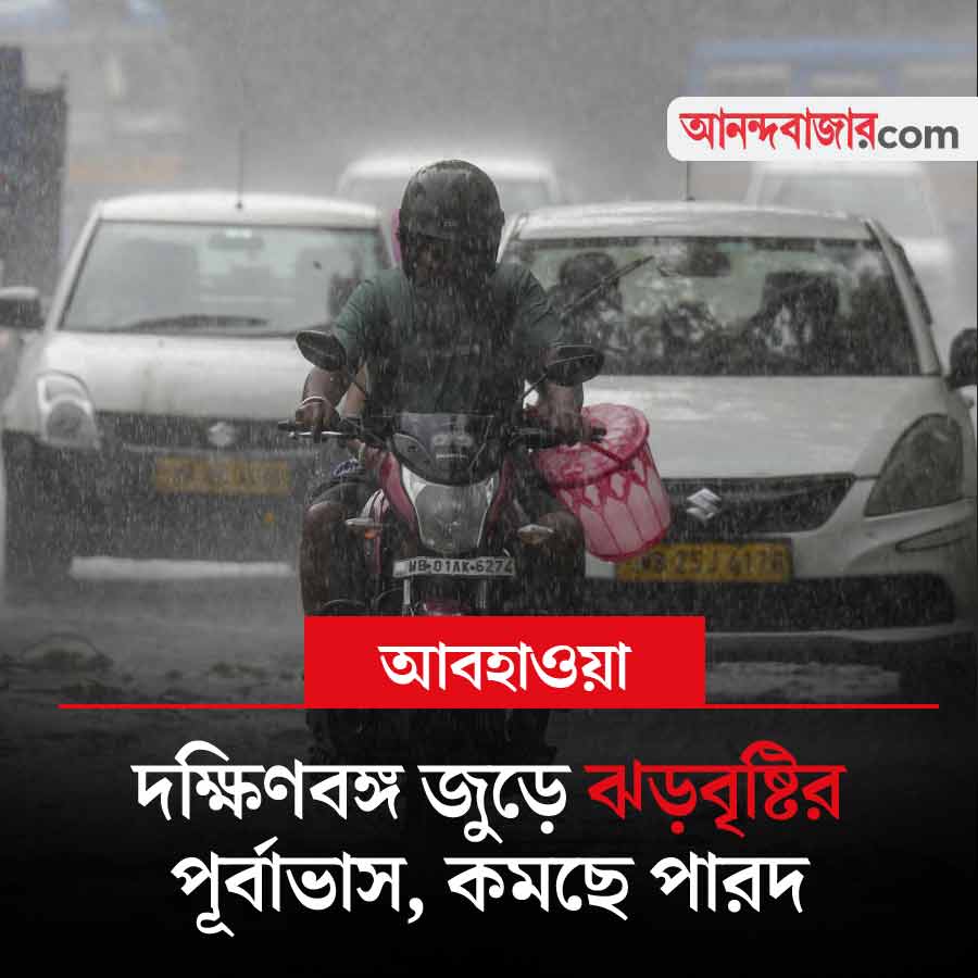 কলকাতা-সহ দক্ষিণবঙ্গের বিস্তীর্ণ অংশে কালবৈশাখী ঝড়ের সতর্কতা রয়েছে আগামী কয়েক দিন। ঝড়বৃষ্টির ফলে তাপমাত্রাও কমছে। হুগলি, পূর্ব বর্ধমান এবং উত্তর ২৪ পরগনায় ভারী বর্ষণের সম্ভাবনা রয়েছে। হতে পারে শিলাবৃষ্টিও। বৃষ্টির সঙ্গে ঝোড়ো হাওয়ার বেগ থাকতে পারে ঘণ্টায় ৫০ থেকে ৭০ কিলোমিটার। উত্তরবঙ্গেও দুর্যোগ চলবে। অক্ষরেখা এবং ঘূর্ণাবর্তের জেরে বঙ্গোপসাগর থেকে প্রচুর পরিমাণে জলীয় বাষ্প ঢুকছে স্থলভাগে। তাই পশ্চিমবঙ্গের উপর ঝড়বৃষ্টির অনুকূল পরিস্থিতি রয়েছে। এই সংক্রান্ত খবরের দিকে নজর থাকবে।
