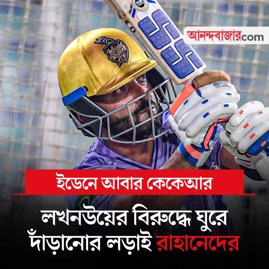 আইপিএলে আজ চতুর্থ ম্যাচ খেলতে নামছে কলকাতা নাইট রাইডার্স। ইডেনে বিপক্ষে কলকাতারই শিল্পপতি সঞ্জীব গোয়েন্কার লখনউ সুপার জায়ান্টস। তিন ম্যাচে ১ পয়েন্ট পেয়েছে নাইটরা। গত সোমবার এক পয়েন্ট এসেছে বৃষ্টির হাত ধরে। পঞ্জাব কিংসের বিরুদ্ধে ৩.৪ ওভারে ২৫ রানে ২ উইকেট পড়ে গিয়েছিল কেকেআরের। তারপর বৃষ্টির জন্য আর খেলা হয়নি। লখনউয়ের এটি তৃতীয় ম্যাচ। প্রথম ম্যাচে হারার পর দ্বিতীয় ম্যাচে জিতেছেন ঋষভ পন্থেরা। লখনউয়ের বিরুদ্ধে কি ঘুরে দাঁড়াবে অজিঙ্ক রাহানের দল? খেলা শুরু সন্ধ্যা ৭:৩০ থেকে। খেলা দেখা যাবে স্টার স্পোর্টস চ্যানেল ও জিয়োহটস্টার অ্যাপে।