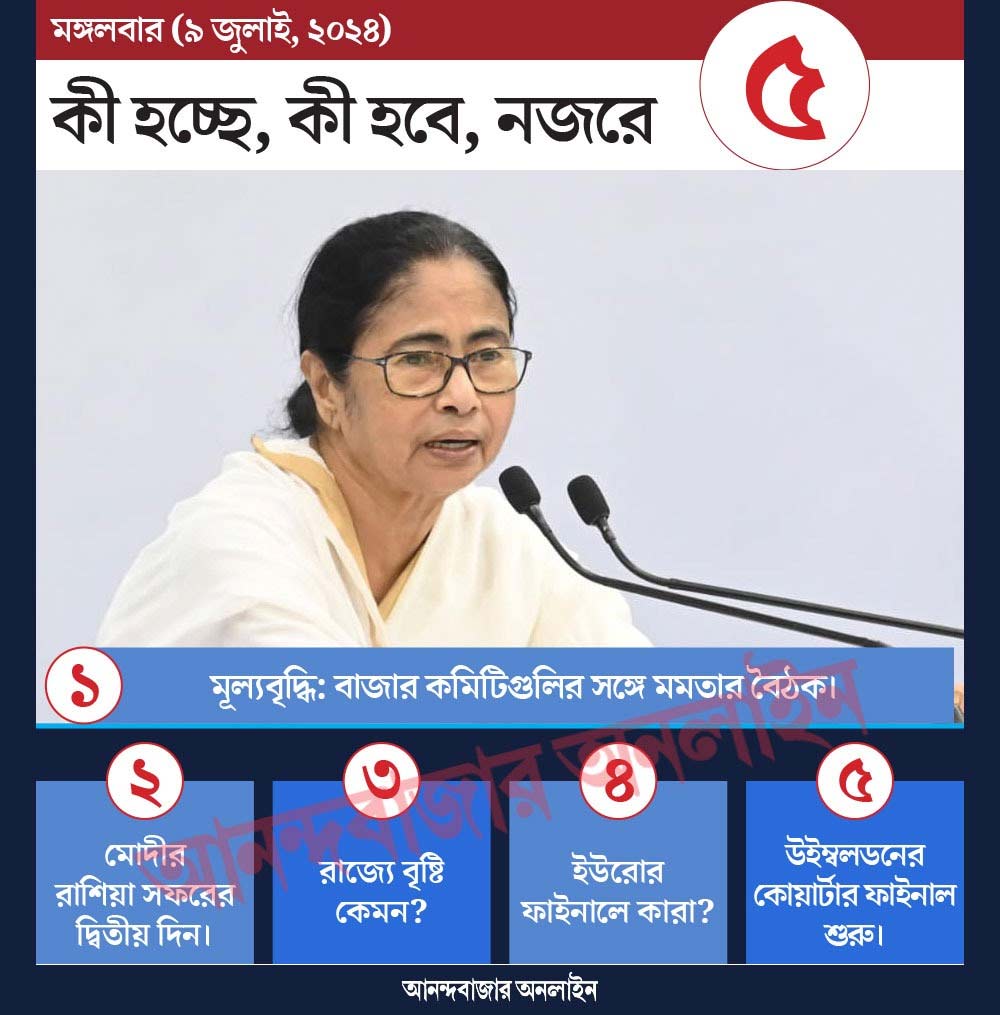 আজ নবান্নে বাজার কমিটিগুলির সঙ্গে বৈঠকে বসবেন মুখ্যমন্ত্রী। বিকেল সাড়ে ৪টের সময় ওই বৈঠক। সেখানে উপস্থিত থাকবেন সরকারি আধিকারিকেরাও। আজ মূল্যবৃদ্ধি নিয়ে আলোচনা হবে বলে নবান্ন সূত্রে জানা গিয়েছে।