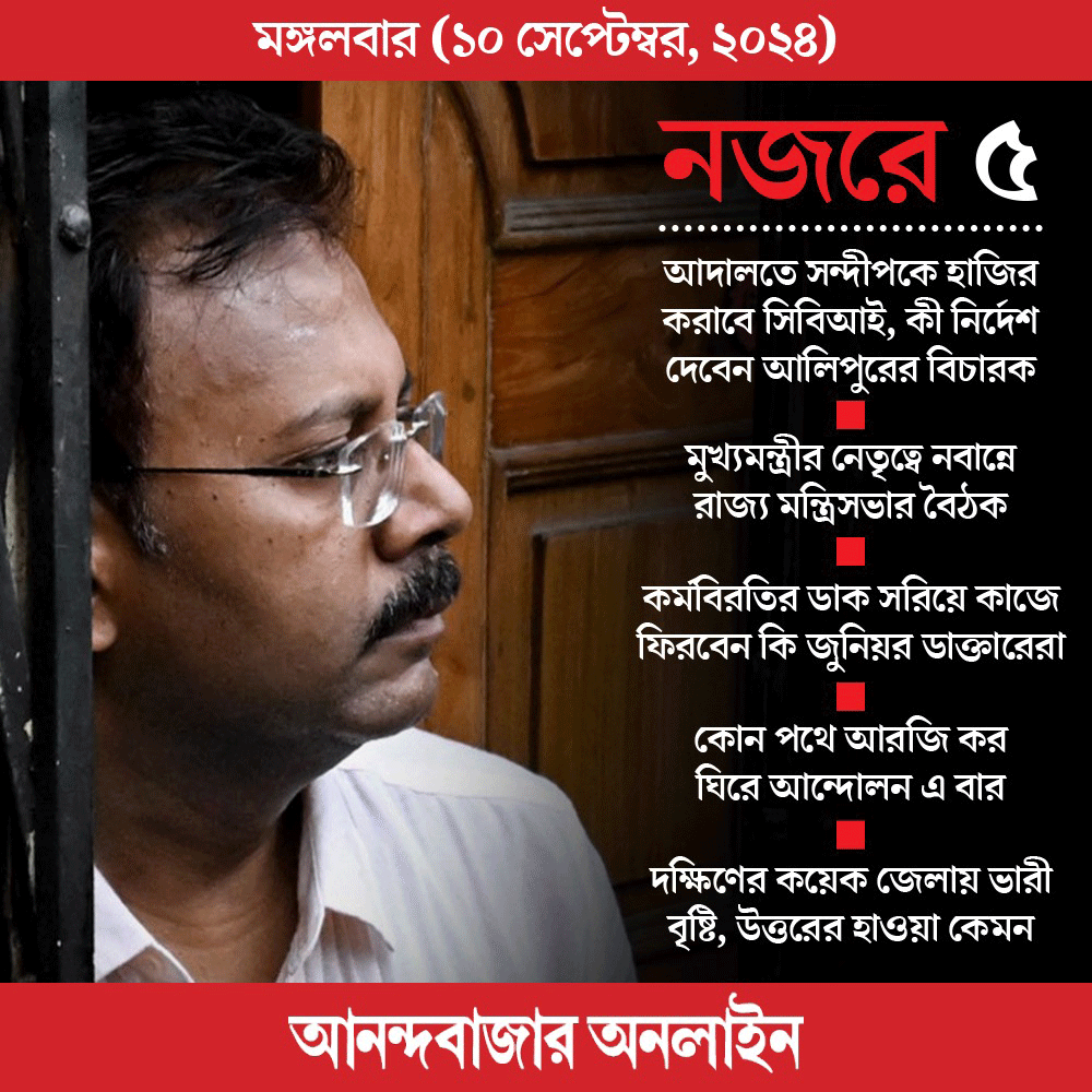 আরজি কর-কাণ্ডে লাগাতার চলতে থাকা আন্দোলন কোন দিকে গড়ায় মঙ্গলবার সে দিকে নজর থাকবে। সুপ্রিম কোর্টের নির্দেশের পর বিকাল ৫টার পর জুনিয়র চিকিৎসকেরা আন্দোলন চালিয়ে যান কি না, সে দিকেও নজর থাকবে সকলের।