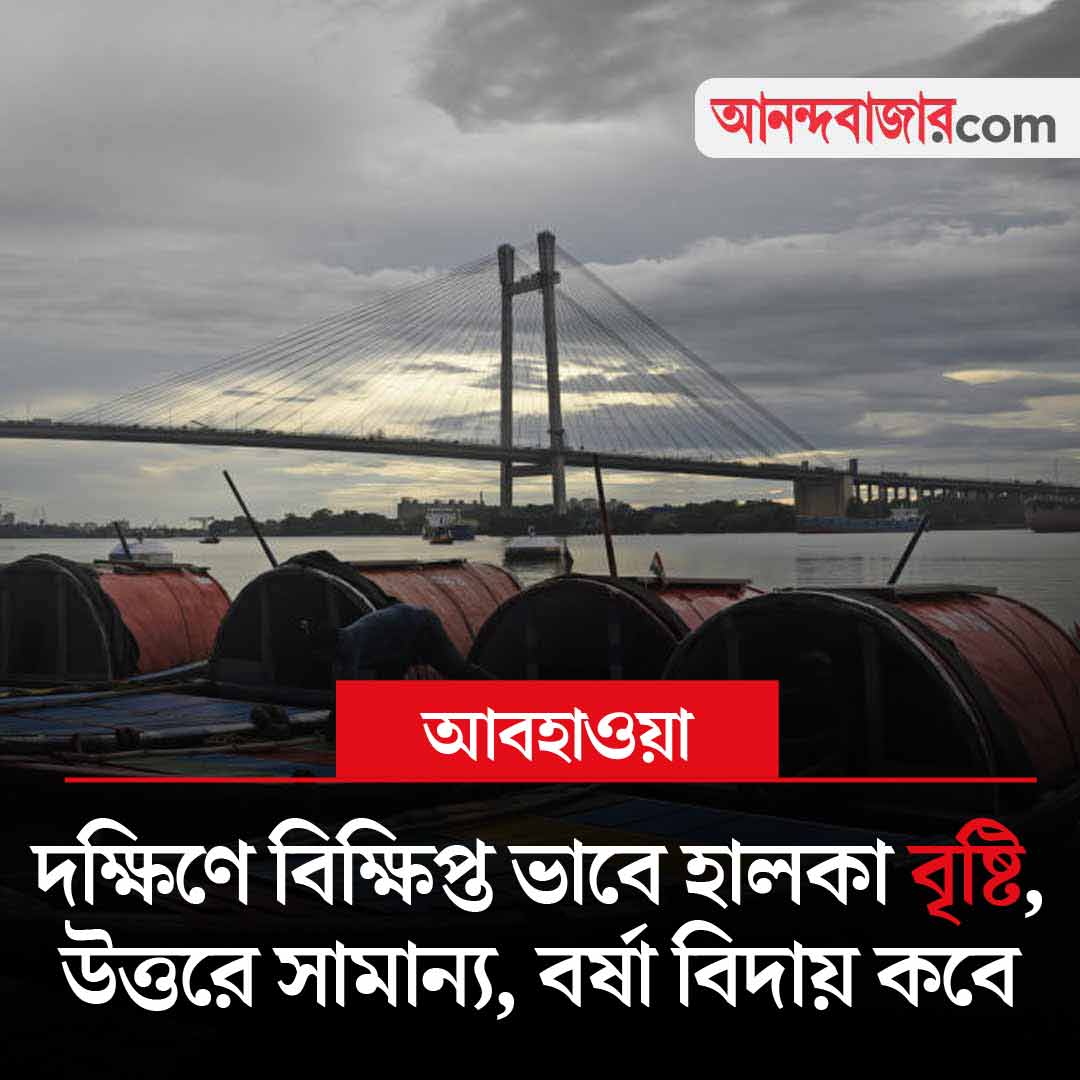দক্ষিণ বাংলাদেশের উপর রয়েছে একটি ঘূর্ণাবর্ত। তার প্রভাবে আজ পর্যন্ত বিক্ষিপ্ত বৃষ্টির সম্ভাবনা রয়েছে দক্ষিণবঙ্গে। তবে শনিবারের তুলনায় রবিবার বৃষ্টির পরিমাণ কিছুটা কমবে। সোমবার থেকে বৃষ্টির সম্ভাবনা আরও কমবে। কমবে বাতাসে জলীয় বাষ্পের পরিমাণ। পশ্চিমের জেলা বাঁকুড়া, পুরুলিয়া, পশ্চিম বর্ধমান থেকে বর্ষা বিদায়ের সম্ভাবনা আগামী সপ্তাহে। উত্তরবঙ্গে বৃষ্টির সম্ভাবনা কম। সেখানে ভারী বৃষ্টির আর কোনও সম্ভাবনা নেই। সতর্কতা জারি করার মতো পরিস্থিতি তৈরি হয়নি। আকাশ বেশির ভাগ সময় পরিষ্কার থাকবে।