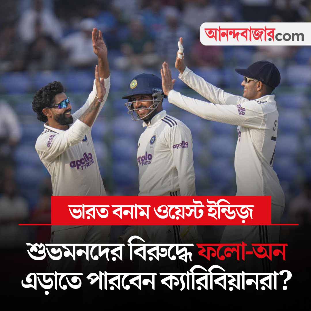 ভারতের বিরুদ্ধে দ্বিতীয় টেস্টে অবশেষে কিছুটা লড়াই করছে ওয়েস্ট ইন্ডিজ়। এ বার সম্ভবত আর আড়াই দিনে শেষ হবে না পাঁচ দিনের টেস্ট। ভারত ৫ উইকেটে ৫১৮ রান তুলে ইনিংস ডিক্লেয়ার করে দিয়েছে। জবাবে দ্বিতীয় দিনের শেষে ওয়েস্ট ইন্ডিজ় ৪ উইকেটে ১৪০ রান তুলেছে। ফলো-অন কি এড়াতে পারবে তারা? আজ তৃতীয় দিনের খেলা শুরু সকাল ৯:৩০ থেকে। খেলা দেখা যাবে স্টার স্পোর্টস চ্যানেল ও জিয়োহটস্টার অ্যাপে।