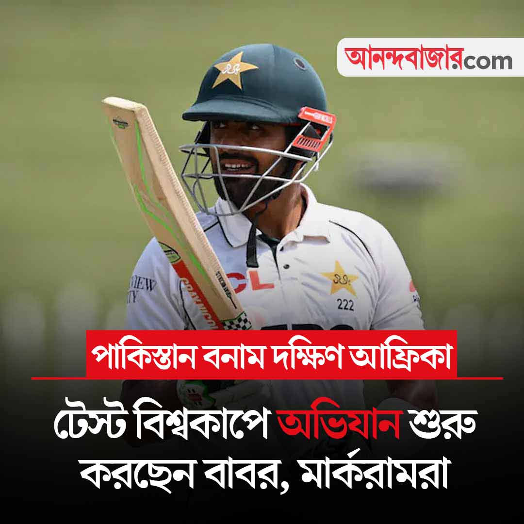 বিশ্ব টেস্ট চ্যাম্পিয়নশিপে আজ অভিযান শুরু করছে পাকিস্তান। ঘরের মাঠে তাদের প্রতিপক্ষ গত বারের চ্যাম্পিয়ন দক্ষিণ আফ্রিকা। বাবর আজ়ম, মহম্মদ রিজ়ওয়ানকে আবার দলে নিয়েছে পাকিস্তান। দক্ষিণ আফ্রিকা এই সিরিজ়ে পাচ্ছে না অধিনায়ক টেম্বা বাভুমাকে। তার বদলে নেতৃত্ব দেবেন এইডেন মার্করাম। খেলা শুরু সকাল ১০:৩০ থেকে। খেলা দেখা যাবে ফ্যানকোড অ্যাপে।