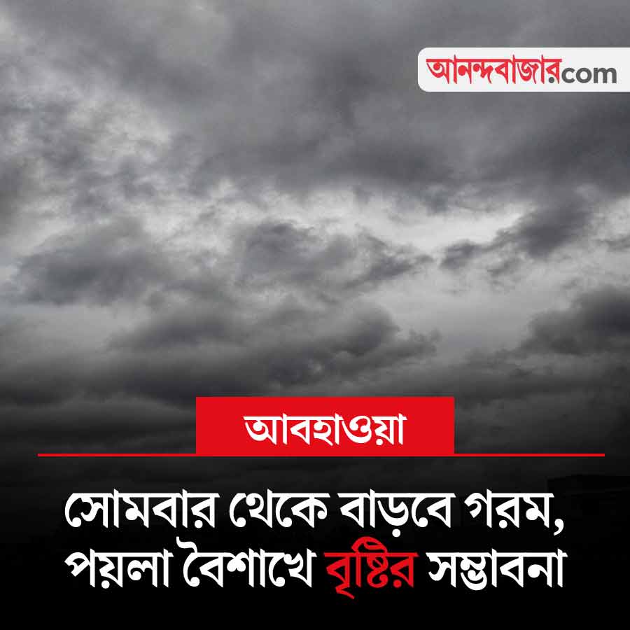 চৈত্রের শেষ তিনটে দিন দক্ষিণবঙ্গের বেশ কিছু জেলায় হাঁসফাঁস গরম পড়বে। গরম এবং অস্বস্তির কারণে ওই জেলাগুলিতে সতর্কতা জারি করা হয়েছে। কলকাতা-সহ সারা রাজ্যে দিনের তাপমাত্রা ৩ থেকে ৪ ডিগ্রি সেলসিয়াস বাড়বে। তবে পয়লা বৈশাখে আবার উত্তরবঙ্গের আট জেলা এবং দক্ষিণবঙ্গের কয়েকটি জেলায় বিক্ষিপ্ত ঝড়বৃষ্টির সম্ভাবনা রয়েছে।