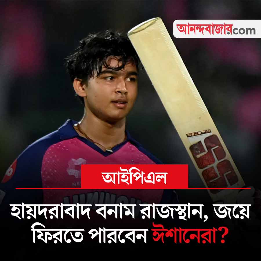 এ বারের আইপিএলে অপ্রতিরোধ্য দেখাচ্ছে রাজস্থান রয়্যালসকে। চার ম্যাচ খেলে চারটিই জিতেছে তারা। পয়েন্ট তালিকায় সকলের উপরে তারাই। অন্য দিকে, সানরাইজ়ার্স হায়দরাবাদ চার ম্যাচ খেলে মাত্র একটি জিতেছে। আজ হায়দরবাদের ঘরের মাঠে তাদের বিরুদ্ধে নামবে রাজস্থান। ফর্মে থাকা বৈভব সূর্যবংশী, যশস্বী জয়সওয়ালদের কি হারাতে পারবেন ঈশান কিশনেরা? আজ সন্ধ্যা ৭.৩০ মিনিটে শুরু খেলা। সরাসরি দেখা যাবে স্টার স্পোর্টস চ্যানেল ও জিয়োহটস্টার অ্যাপে।