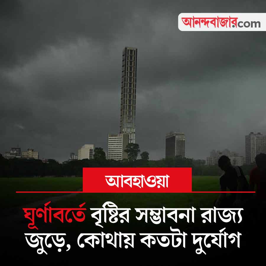 কলকাতা এবং শহরতলির বিস্তীর্ণ অংশে বৃহস্পতিবার সন্ধ্যায় বৃষ্টি হয়েছে। সঙ্গে ছিল ঠান্ডা হাওয়া। আলিপুর আবহাওয়া দফতর জানিয়েছে, উত্তরবঙ্গে ভারী বৃষ্টির সম্ভাবনা রয়েছে আগামী কয়েক দিনে। দক্ষিণবঙ্গের একাধিক জেলায় বজ্রবিদ্যুৎ-সহ বৃষ্টি হতে পারে। সঙ্গে ঘণ্টায় ৪০ থেকে ৫০ কিলোমিটার বেগে ঝোড়ো হাওয়া বইতে পারে।বাংলাদেশ এবং সংলগ্ন গাঙ্গেয় পশ্চিমবঙ্গের উপর একটি ঘূর্ণাবর্ত রয়েছে। সমুদ্রপৃষ্ঠ থেকে তার উচ্চতা ১.৫ কিলোমিটার। রয়েছে একটি অক্ষরেখাও। এর ফলে বঙ্গোপসাগর থেকে প্রচুর পরিমাণে জলীয় বাষ্প রাজ্যে ঢুকছে। ফলে ঝড়বৃষ্টির অনুকূল পরিস্থিতি তৈরি হয়েছে।