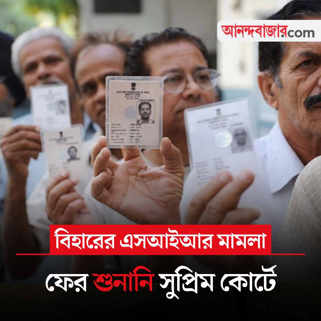 গত দু’দিন পরে আজ তৃতীয় দিন বিহারে বিশেষ নিবিড় সমীক্ষা নিয়ে শুনানি রয়েছে সুপ্রিম কোর্টে। বেলা ১১টা নাগাদ বিচারপতি সূর্য কান্ত এবং বিচারপতি জয়মাল্য বাগচীর বেঞ্চে শুনানি হবে। বুধবারের শুনানিতে মামলাকারীদের পক্ষে আইনজীবীরা সওয়াল করেন। বিশেষ সমীক্ষা আপাতত স্থগিত রাখার আর্জি জানানো হয় আদালতে। ভোটের আগে কেন ওই সমীক্ষা করা হচ্ছে সেই প্রশ্নও তোলেন মামলাকারীরা। আজ কমিশনের পক্ষ থেকে পাল্টা সওয়াল করার কথা। শীর্ষ আদালত জানিয়েছে, আজকে এই মামলা শুনানি শেষ করার চেষ্টা করা হবে। এই অবস্থায় আজ সুপ্রিম কোর্টে কী হয় সে দিকে নজর থাকবে।