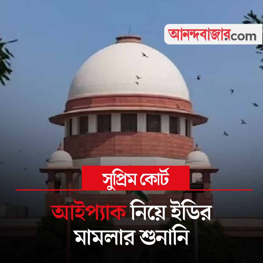 আইপ্যাক নিয়ে ইডি সুপ্রিম কোর্টে যে মামলাটি করেছে, আজই তার শুনানি হবে। কলকাতা হাই কোর্ট বুধবার এই মামলা শুনেছে এবং শুনানি আপাতত মুলতুবি রাখা হয়েছে। বুধবার সুপ্রিম কোর্ট জানিয়েছে, আইপ্যাক-কাণ্ডে ইডির মামলার শুনানি বৃহস্পতিবার বেলা সাড়ে ১১টা নাগাদ। মামলাটি শুনবে শীর্ষ আদালতের বিচারপতি প্রশান্তকুমার মিশ্র এবং বিচারপতি বিপুল মনুভাই পাঞ্চোলির বেঞ্চ।