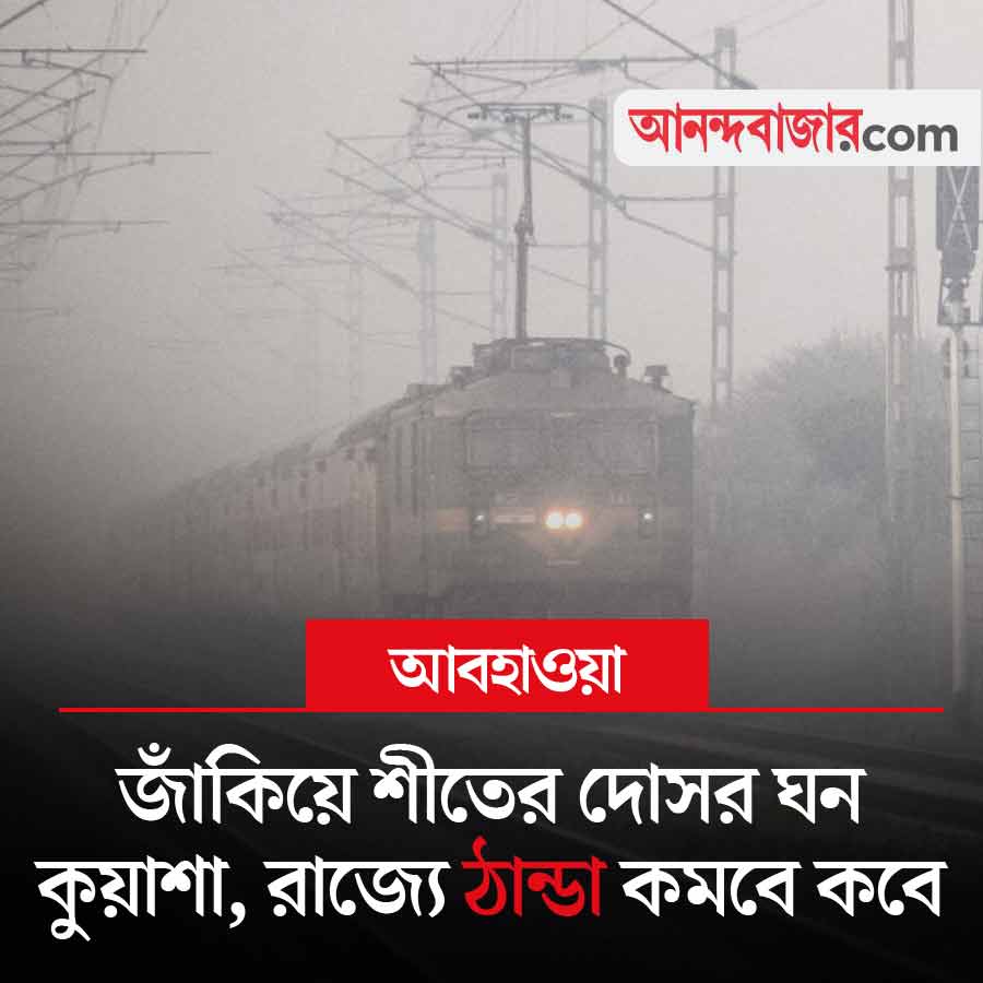 জাঁকিয়ে শীত পড়েছে রাজ্য জুড়ে। আগামী কয়েক দিনে ঠান্ডা কমার সম্ভাবনা নেই। একই রকম থাকবে রাতের তাপমাত্রা। সোমবার পর্যন্ত গাঙ্গেয় পশ্চিমবঙ্গ এবং উত্তরের জেলাগুলিতে রাতের তাপমাত্রায় বিশেষ ওঠানামা হবে না। আবহাওয়া মোটের উপর শুষ্কই থাকবে। সঙ্গে রয়েছে কুয়াশার সতর্কতা। উত্তরবঙ্গের একাধিক জেলায় ঘন কুয়াশা থাকবে বলে জানিয়েছে আলিপুর আবহাওয়া দফতর।
