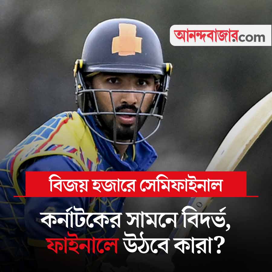 বিজয় হজারে ট্রফির প্রথম সেমিফাইনাল অনুষ্ঠিত হবে বৃহস্পতিবার। দেবদত্ত পাড়িক্কল, মায়াঙ্ক আগরওয়ালের কর্নাটকের বিরুদ্ধে খেলবে বিদর্ভ। কোন দল উঠবে ফাইনালে। ম্যাচ শুরু দুপুর ১.৩০টা থেকে।