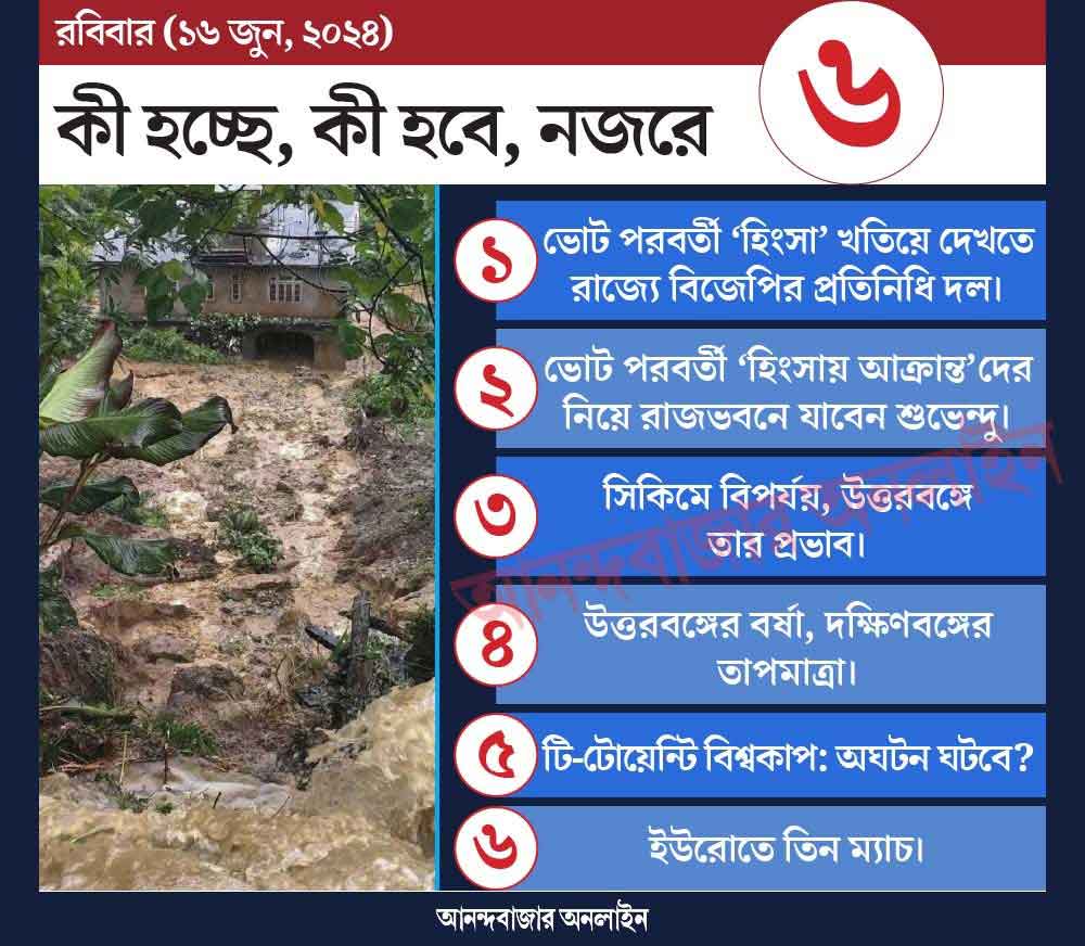 বিজেপির দাবি, ভোটের পর দেশের মধ্যে ‘হিংসা’ হয়েছে শুধু পশ্চিমবঙ্গেই। সেই হিংসার কারণ অনুসন্ধান করার জন্য চার সদস্যের দল পাঠানো হচ্ছে। দলের সদস্যদের নির্বাচন করেছেন বিজেপির সর্বভারতীয় সভাপতি জেপি নড্ডা। প্রতিনিধি দলে আছেন ত্রিপুরার প্রাক্তন মুখ্যমন্ত্রী তথা বর্তমান সাংসদ বিপ্লব দেব। তিনিই ওই কমিটির আহ্বায়ক। এ ছাড়া আছেন প্রাক্তন কেন্দ্রীয় মন্ত্রী তথা বর্তমান সাংসদ রবিশঙ্কর প্রসাদ, উত্তরপ্রদেশ পুলিশের প্রাক্তন ডিজি তথা বর্তমানে রাজ্যসভার সাংসদ ব্রিজলাল এবং মধ্যপ্রদেশের রাজ্যসভা সাংসদ কবিতা পাতিদার। আজ এই খবরে নজর থাকবে।