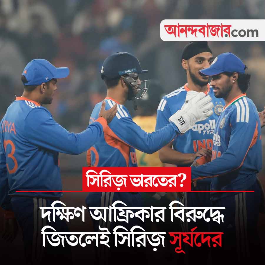 আজ ভারত বনাম দক্ষিণ আফ্রিকা চতুর্থ টি-টোয়েন্টি ম্যাচ। আজ জিতলেই সিরিজ় জিতে যাবে ভারত। সূর্যকুমার যাদবেরা ২-১ ফলে সিরিজ়ে এগিয়ে। ভারত কি এক ম্যাচ বাকি থাকতেই সিরিজ় জিতে যাবে? না কি দক্ষিণ আফ্রিকা এই ম্যাচে জিতে সমতা ফেরাবে? খেলা শুরু সন্ধ্যা ৭টায়। খেলা দেখা যাবে স্টার স্পোর্টস চ্যানেল ও জিয়োহটস্টার অ্যাপে।