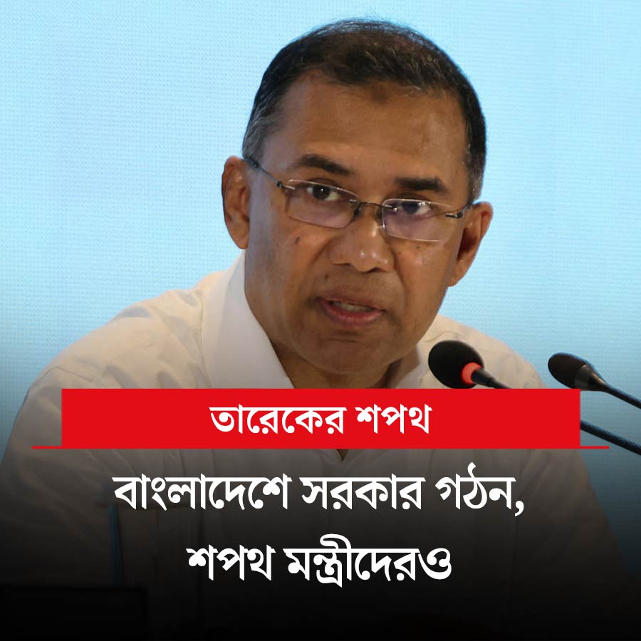 আজ বাংলাদেশের প্রধানমন্ত্রী পদে শপথ নেবেন বিএনপি প্রধান তারেক রহমান। বাংলাদেশে আড়াই দশক পরে আবার প্রধানমন্ত্রী পদে শপথ নেবেন কোনও বিএনপি নেতা। এর আগে ২০০১ সালের ১০ অক্টোবর প্রধানমন্ত্রী পদে শপথ নিয়েছিলেন তারেকের মা খালেদা জিয়া। মুহাম্মদ ইউনূসের নেতৃত্বাধীন অন্তর্বর্তী সরকার আজ বিকেলে জাতীয় সংসদ ভবনের দক্ষিণ প্লাজায় নতুন মন্ত্রিসভার সদস্যদের শপথ গ্রহণের আয়োজন করেছে। শপথ অনুষ্ঠানে প্রায় ১২০০ দেশি–বিদেশি অতিথি যোগ দিতে পারেন। ভারতের তরফে শপথ অনুষ্ঠানে যোগ দেবেন স্পিকার ওম বিড়লা। নতুন মন্ত্রিসভার আকার ৩৫ থেকে ৩৭ সদস্যের হতে পারে। এর মধ্যে ২৬ থেকে ২৭ জন পূর্ণ মন্ত্রী হতে পারেন। প্রতিমন্ত্রী করা হতে পারে ৯ থেকে ১০ জনকে।