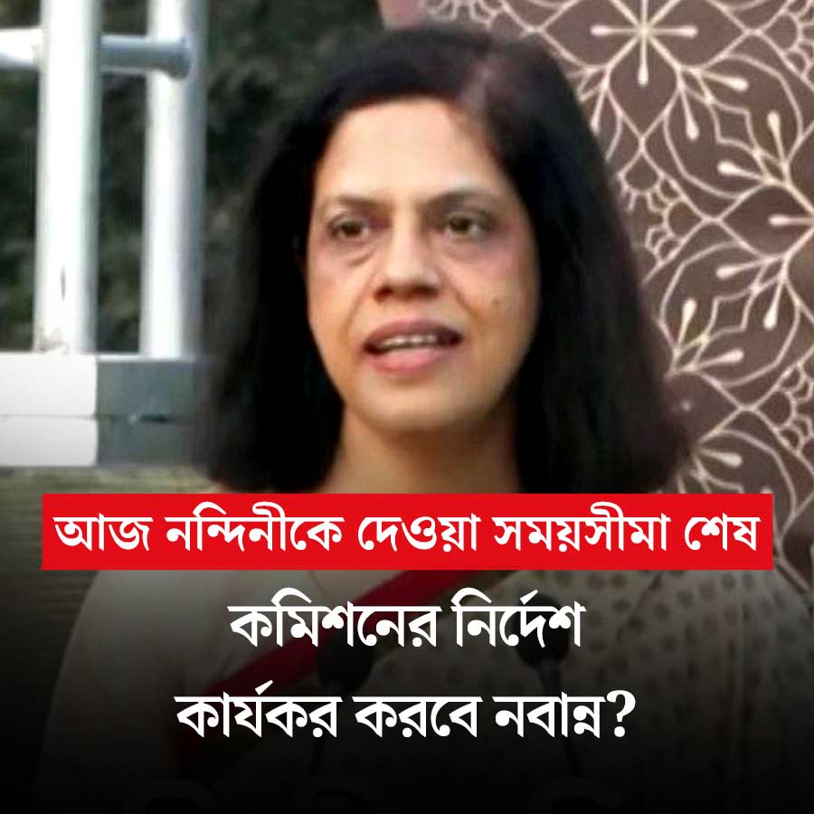 এসআইআর প্রক্রিয়া শুরুর আগেই দুই জেলার চার আধিকারিককে সাসপেন্ড করে তাঁদের বিরুদ্ধে এফআইআর দায়েরের নির্দেশ দিয়ে কমিশন রাজ্যের তৎকালীন মুখ্যসচিব মনোজ পন্থকে চিঠি দিয়েছিল। অভিযোগ, ওই আধিকারিকেরা ‘ভুয়ো’ বা ‘ভূতুড়ে’ ভোটারদের নাম তালিকায় বেআইনি ভাবে তুলেছেন। নির্দেশ কার্যকর করা না-হওয়ায় গত ২ জানুয়ারি সংশ্লিষ্ট দুই জেলাশাসককে এফআইআর করার নির্দেশ দেয় কমিশন। সেই নির্দেশ কার্যকর হয়নি। ইতিমধ্যে সিইও দফতর থেকে জেলাশাসকদের দু’বার ‘রিমাইন্ডার’ দেওয়া হয়। কিন্তু নির্দেশ কার্যকর না-হওয়ায় শুক্রবার দিল্লিতে নির্বাচন সদনে তলব করা হয়েছিল রাজ্যের বর্তমান মুখ্যসচিব নন্দিনী চক্রবর্তীকে। শনিবার জানা যায়, ওই চার আধিকারিকের বিরুদ্ধে এফআইআর করার জন্য মঙ্গলবার পর্যন্ত রাজ্যকে সময় দিয়েছে কমিশন। আজ সেই সময়সীমা শেষ হচ্ছে।
