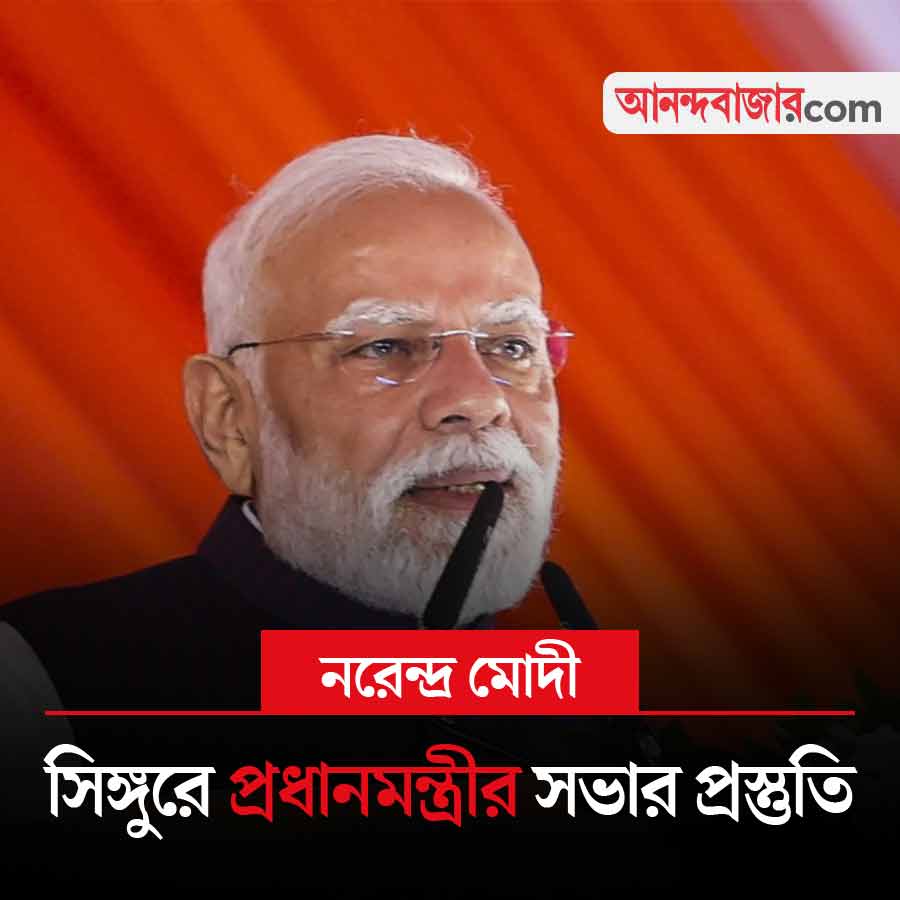 রবিবার সিঙ্গুরে প্রধানমন্ত্রী আসছেন। করবেন জনসভা। রাজ্য বিজেপির প্রথম সারির নেতারা এবং কেন্দ্রীয় পর্যবেক্ষকেরা দফায় দফায় সিঙ্গুরের সভাস্থল এবং সভার প্রস্তুতি পরিদর্শন করছেন। মালদহের মতো সিঙ্গুরেও একটি প্রশাসনিক এবং একটি রাজনৈতিক সভা হবে। প্রশাসনিক মঞ্চ থেকে ৮৩০ কোটি টাকার একাধিক প্রকল্পের উদ্বোধন ও শিলান্যাস করবেন প্রধানমন্ত্রী।